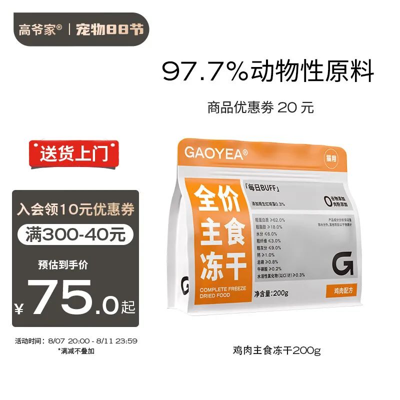 高爷家全价生骨肉鸡肉口味主食冻干200g/袋