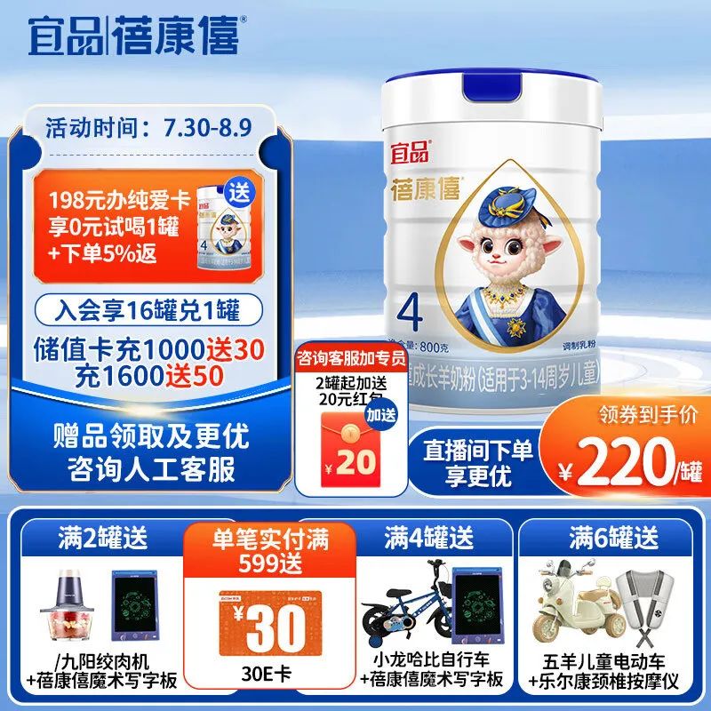 蓓康僖(bekari)学生儿童成长纯羊奶粉4段(3岁以上适用)800g