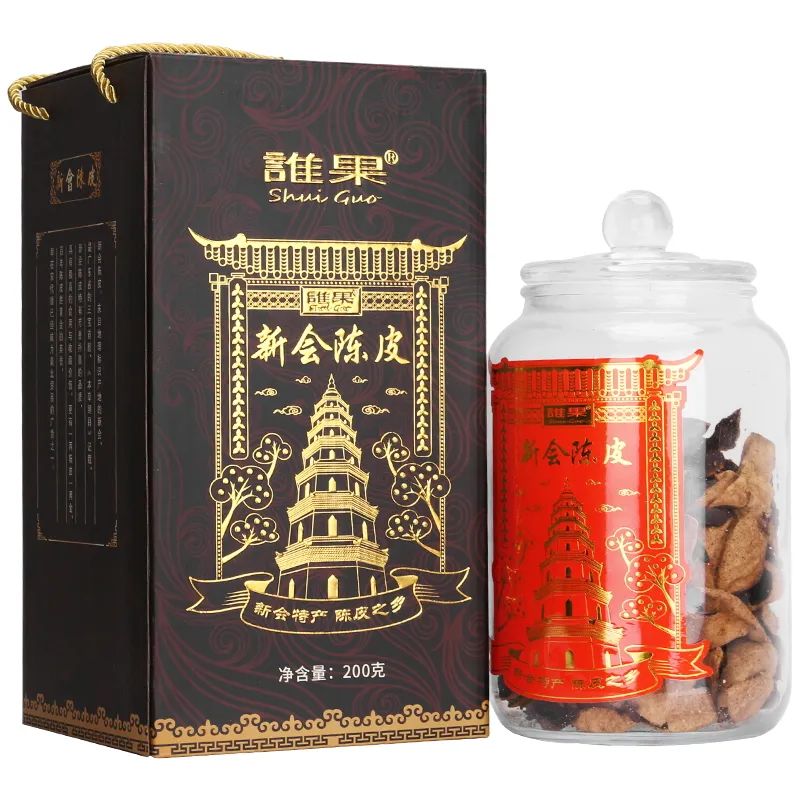 谁果 新会老陈皮干茶200g 精选玻璃藏品装20年大红皮干 广东陈皮干茶叶花草茶泡水 新会源产老皮配枸杞菊花茶
