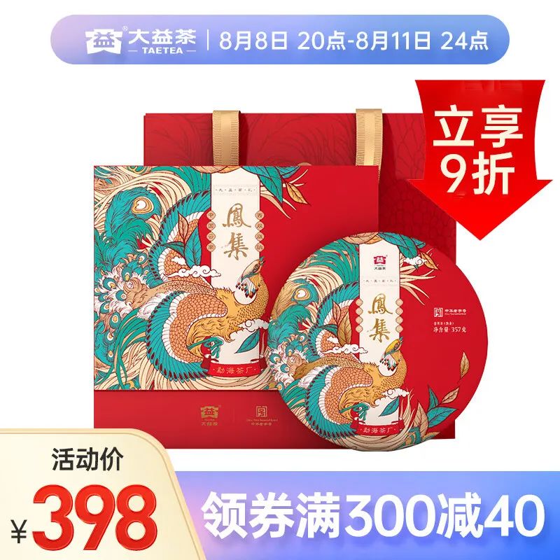 大益TAETEA茶叶普洱茶熟茶凤集礼品礼盒357g/饼 中华老字号