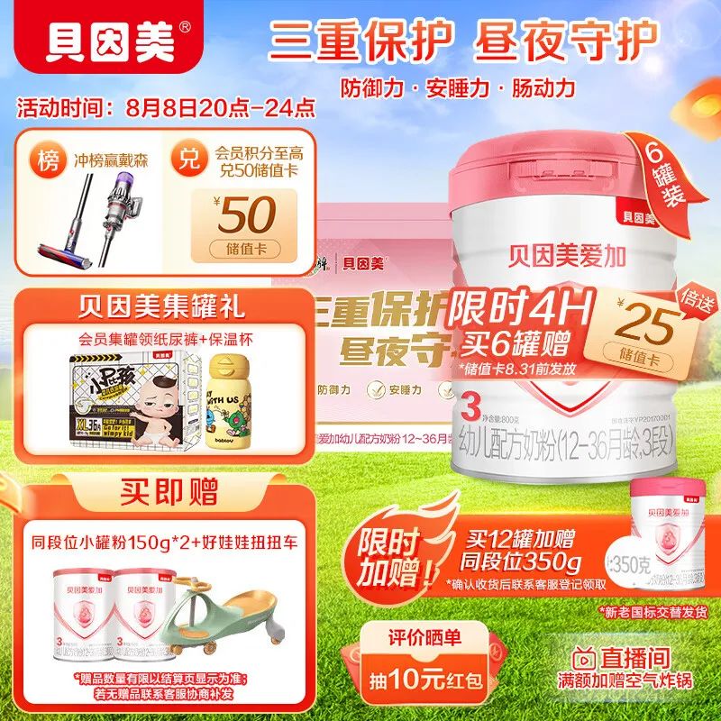 贝因美(Beingmate)大国定制礼盒爱加3段800g*6 含珍稀乳铁蛋白+α-乳白蛋白+益生元