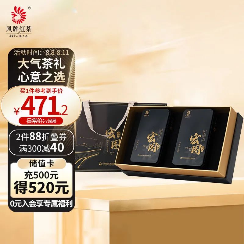 凤牌 茶叶 红茶 云南滇红茶 中华老字号 伴手礼 宏图礼盒 200g