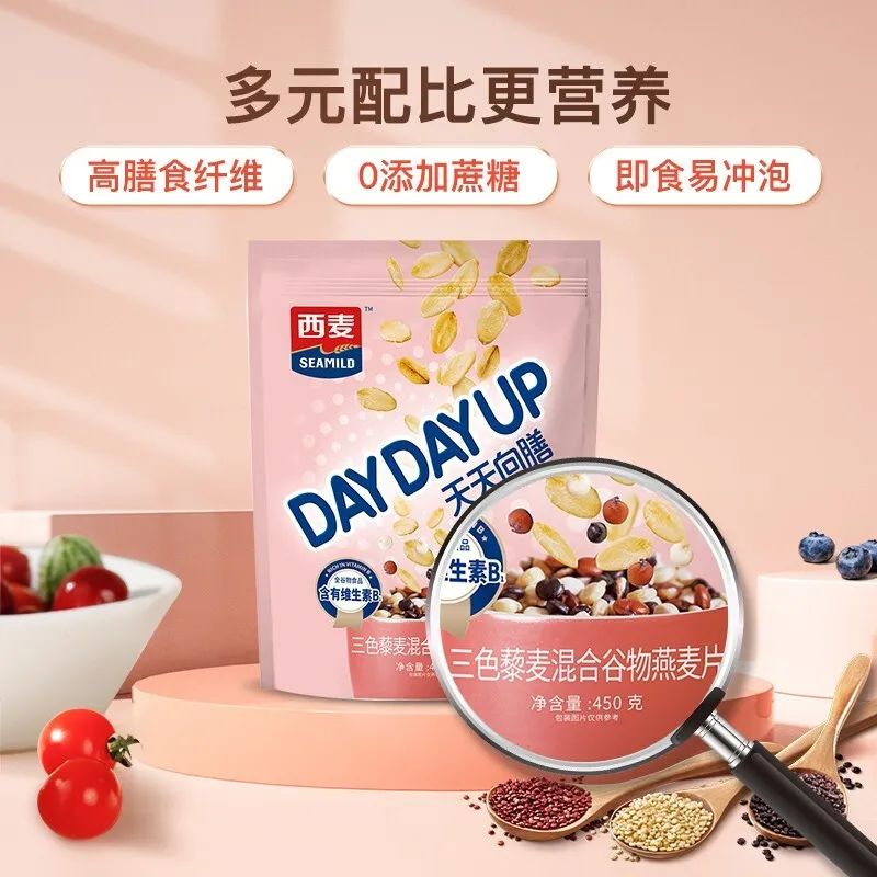 西麦三色藜麦混合谷物燕麦片450g 营养早餐冲饮谷物无额外添加蔗糖