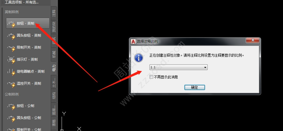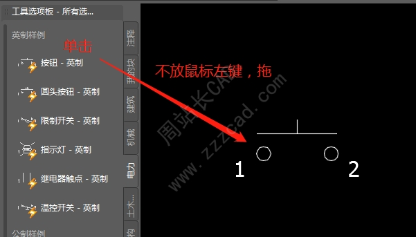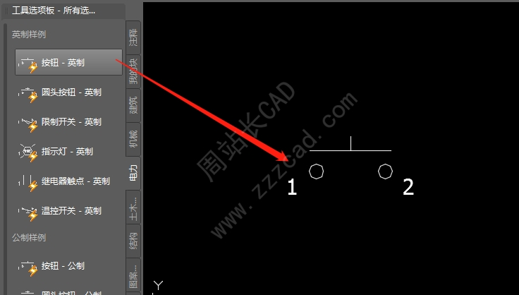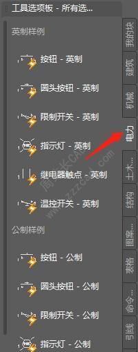 当我们想要插入电气符号时,单击右侧的选项,电力。便会弹出很多电气符号。