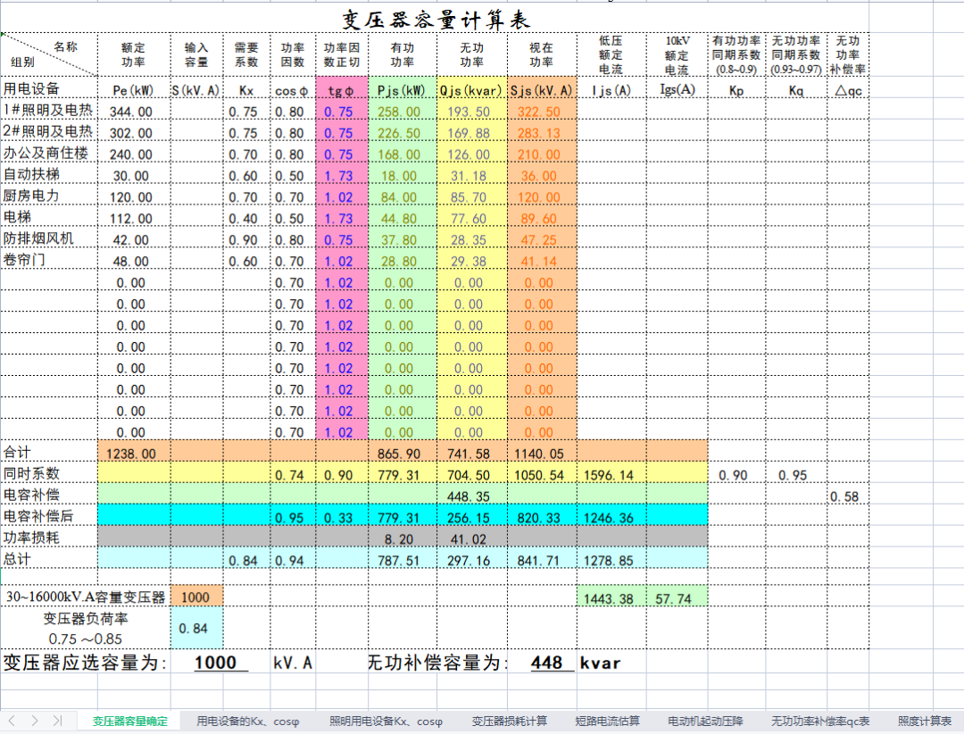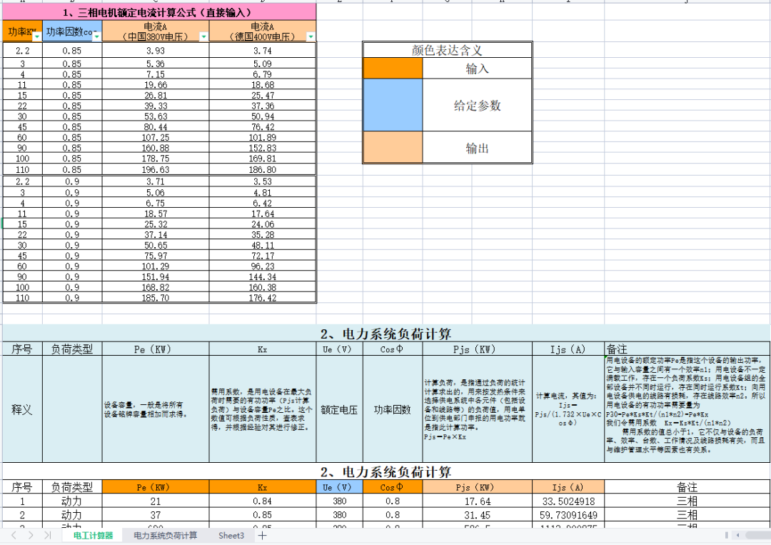 12个电气设计计算表