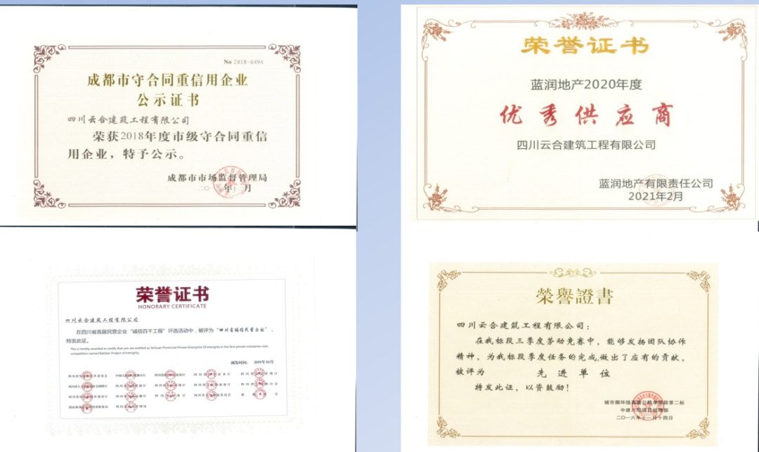 “云合”在涂伟董事长的带领下,公司出色的完成了许多重点建设项目,取得了良好的社会效益和经济效益,获得了实至名归的各项荣誉证书和奖章。