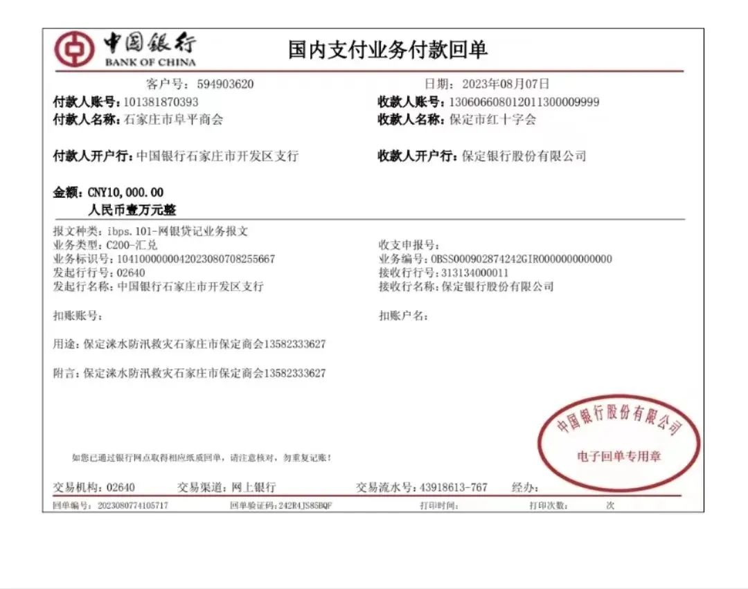 为贯彻习近平总书记对防汛救灾工作的重要指示精神,帮助受灾群众解燃眉之急、尽快度过难关。我商会积极响应石家庄市工商联、石家庄市保定商会抗洪救灾的倡议,捐赠一万元现金,并由石家庄市阜平商会监事李颖、党支部办公室主任陈剑军代表商会到受灾现场全程参与此次活动。