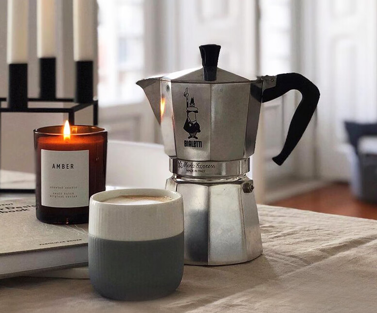 本想买速溶咖啡的,结果买错成了咖啡粉。于是为了不浪费咖啡粉,剁手买了摩卡壶。摩卡壶是不锈钢的,表面锃亮,底部印着hero标签,送的勺子一勺半,基本能填满过滤器,第一次自己煮咖啡,感觉妙极了,看着褐色的咖啡从小孔里涌出,闻着咖啡的醇香。再用打奶器打一杯奶泡,和咖啡1:1,家里没糖,放了一勺蜂蜜,味道也是极好的。味道和在国外喝的咖啡一模一样,从此入坑了。