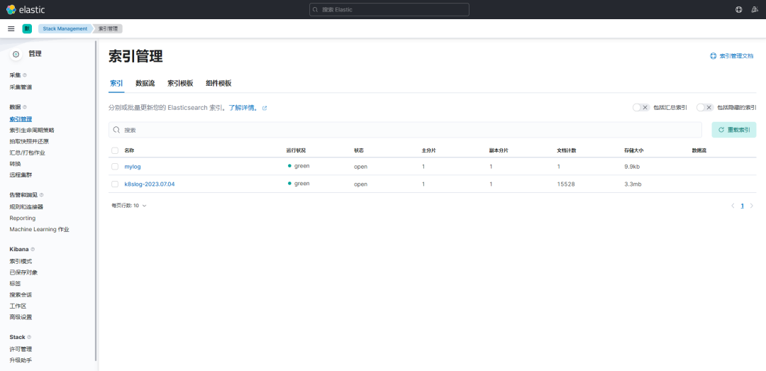 }' http://10.105.9.115:9200/mylog/_doc选择"Stack Management"(堆栈管理)。
