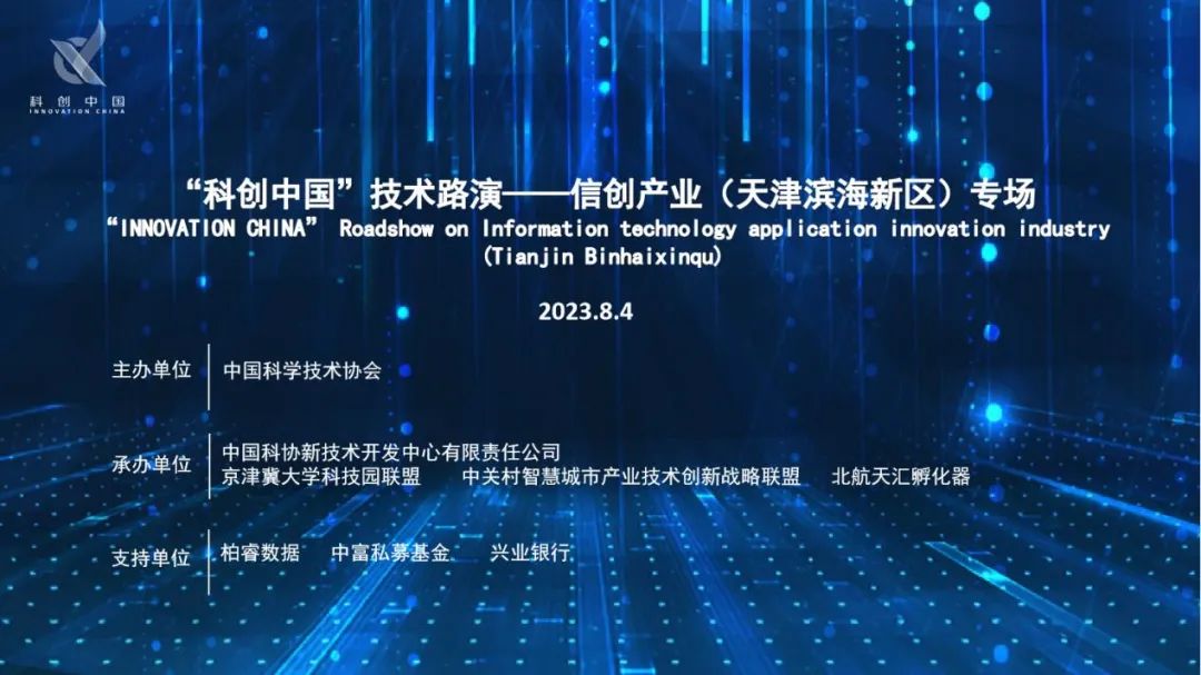 8月4日下午,由中国科学技术协会主办,中国科学技术协会科技创新服务部、中国科协新技术开发中心联合京津冀大学科技园联盟、中关村智慧城市产业技术创新战略联盟、北航天汇孵化器共同承办的“科创中国”技术路演—信创产业(天津滨海新区)专场活动成功举办。