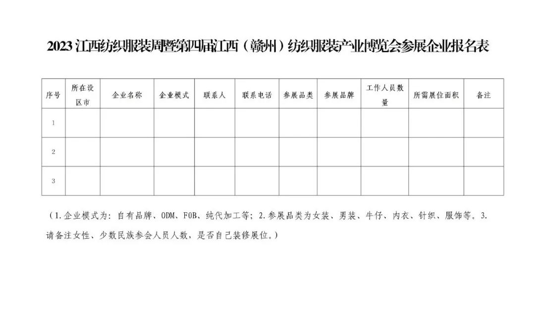 作为中国纺织服装行业在供应链资源对接、产业智能化转型、市场柔性化供给等方面颇具影响力的大型盛会——2023江西纺织服装周暨第四届江西(赣州)纺织服装产业博览会将于2023年11月底在江西于都隆重举办。本届博览会通过强化行业技术交流、促进产业链协同创新、拓展市场需求等方式,进一步巩固产业竞争优势,提升江西省纺织服装高质量发展水平。