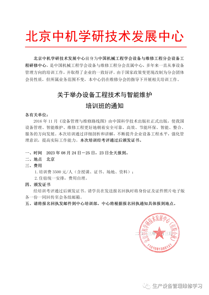 附:设备工程技术与智能维护培训班报名回执表