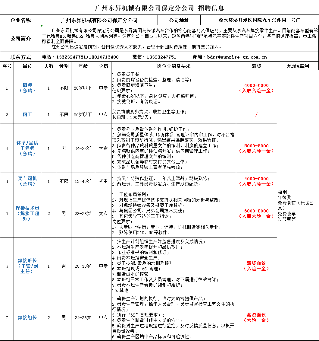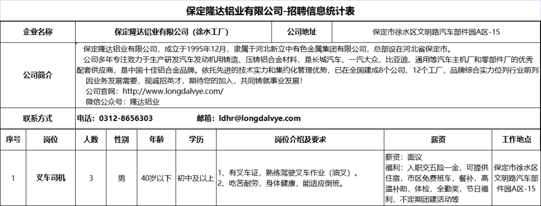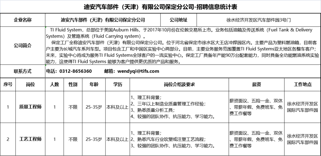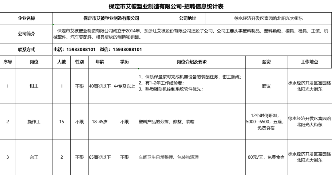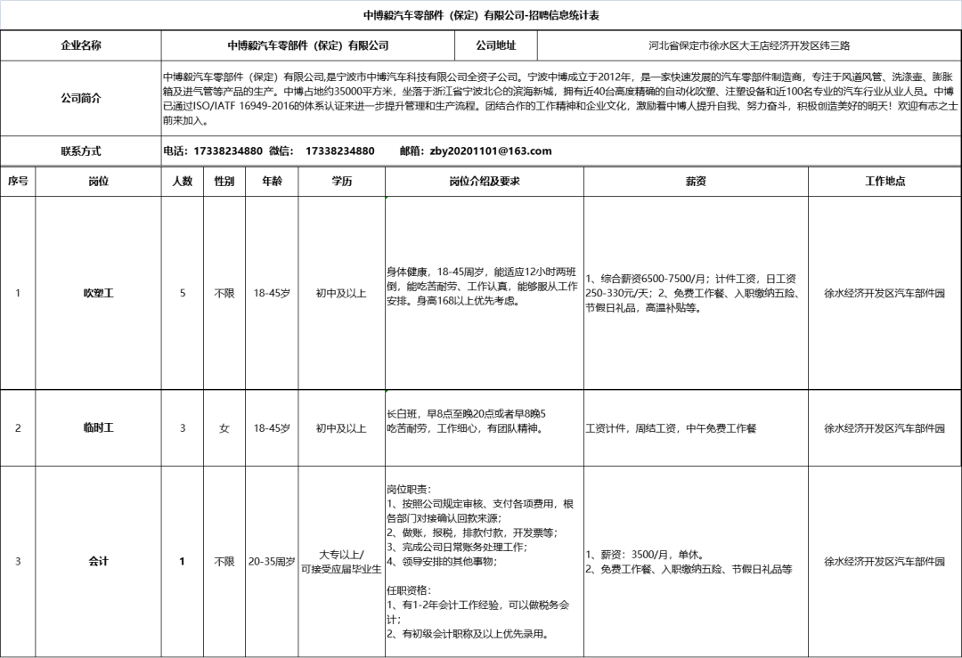 河北徐水经济开发区企业招聘信息来啦!8月9日发布