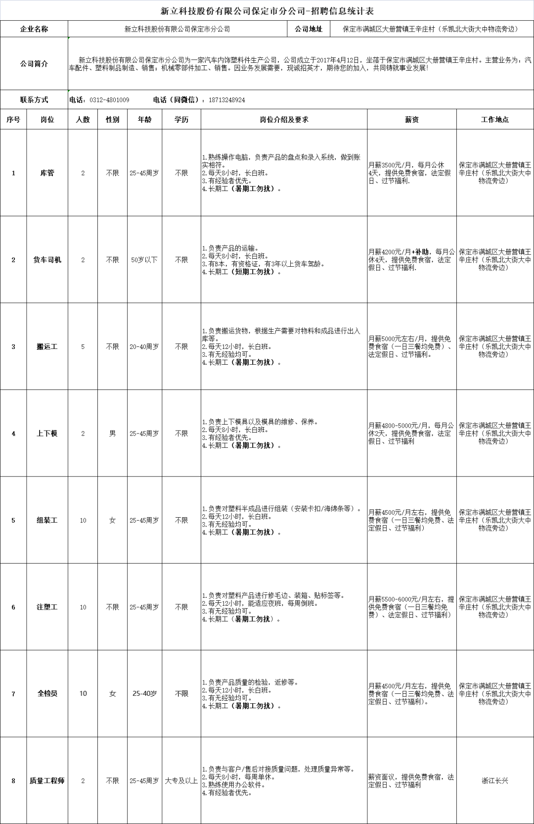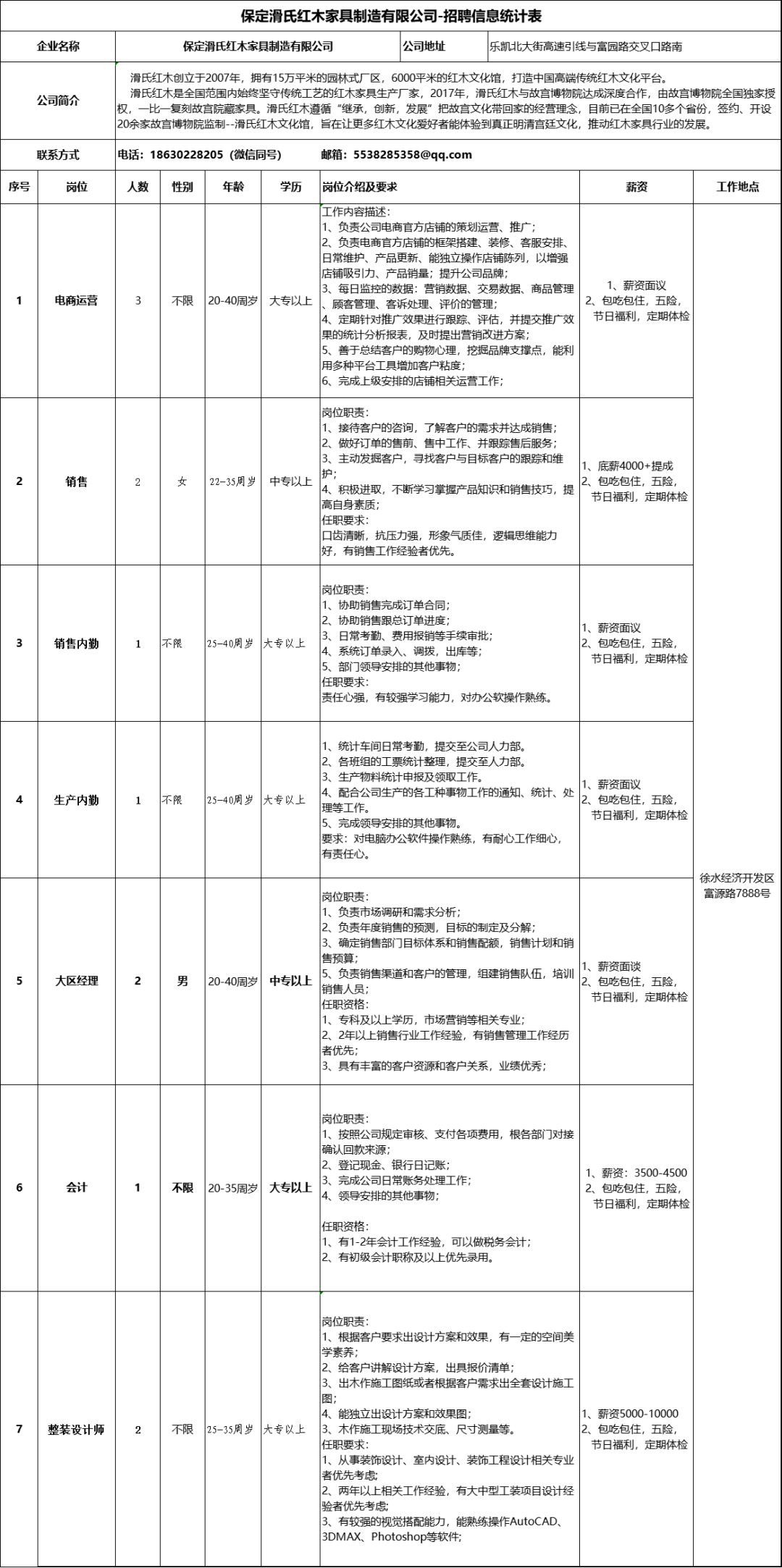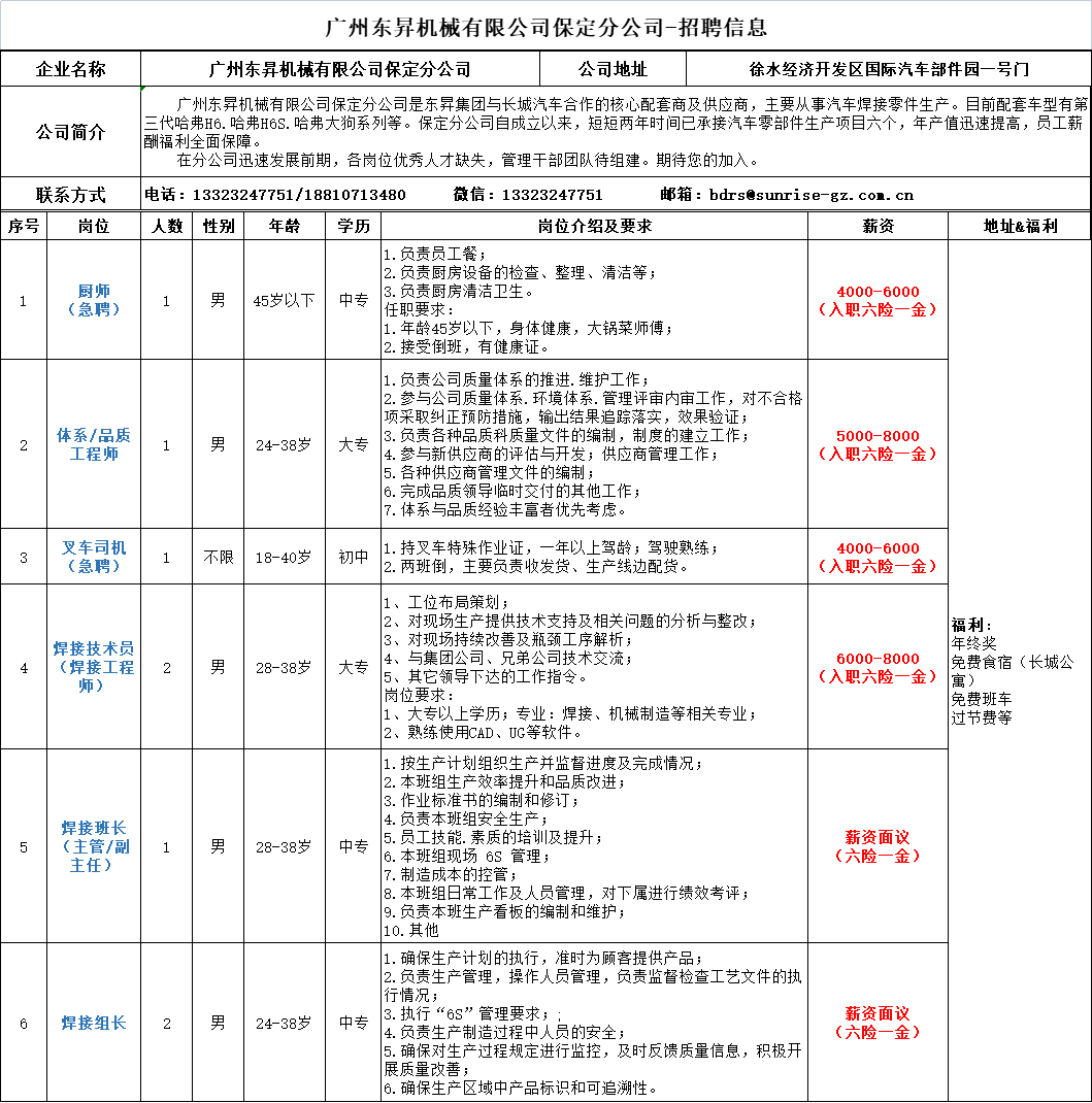 河北徐水经济开发区企业招聘信息来啦!8月9日发布