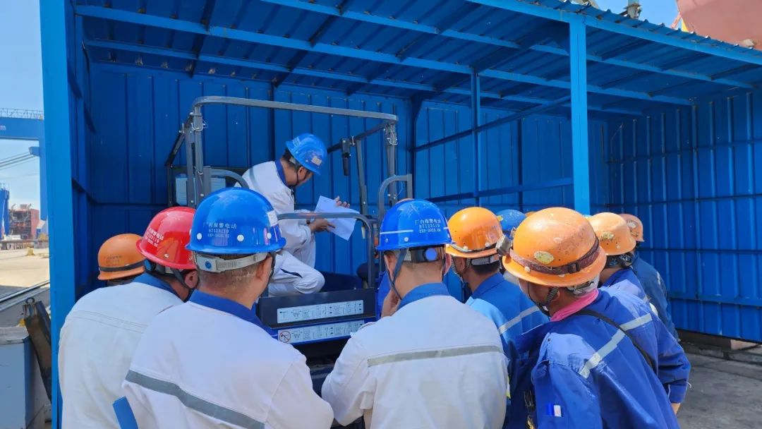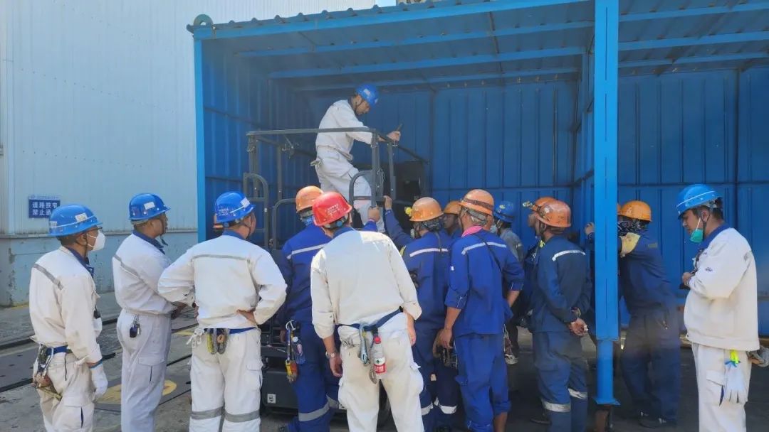 为满足ICCP安装、合拢段管系盲板拆除、舷外系泊件安装等工程的安全性及便捷性,机电工区需要使用“剪叉伸缩平台”辅助作业,为提高操作人员的技能水平和安全意识,8月7日,机电工区在西区船台组织开展“剪叉伸缩平台操作”实景观摩培训活动。