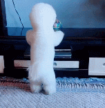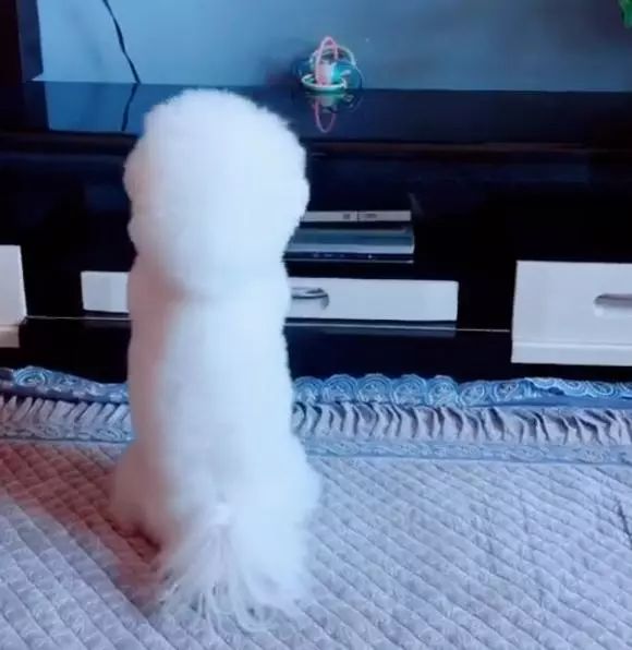 这天女孩闲着在家看电视玩手机,特别的无聊,而一旁的小比熊也觉得有这样的同感,于是呢,小家伙就想去拿电视柜上的玩具和女孩一起玩,可是呢在过去之后,这只小比熊才发现自己的腿实在是太短,即使电视柜真的不高,可是呢却怎么也拿不到!