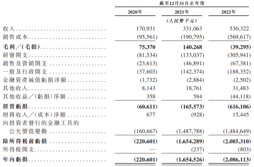 与此同时,速腾聚创的营收也水涨船高。2020年至2022年,公司实现收入分别为1.71亿元、3.31亿元、5.30亿元。但同时亏损情况也在加剧,速腾聚创这三年经调整净亏损分别约为0.60亿元、1.08亿元、5.63亿元。