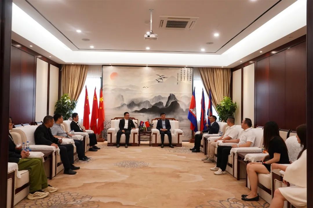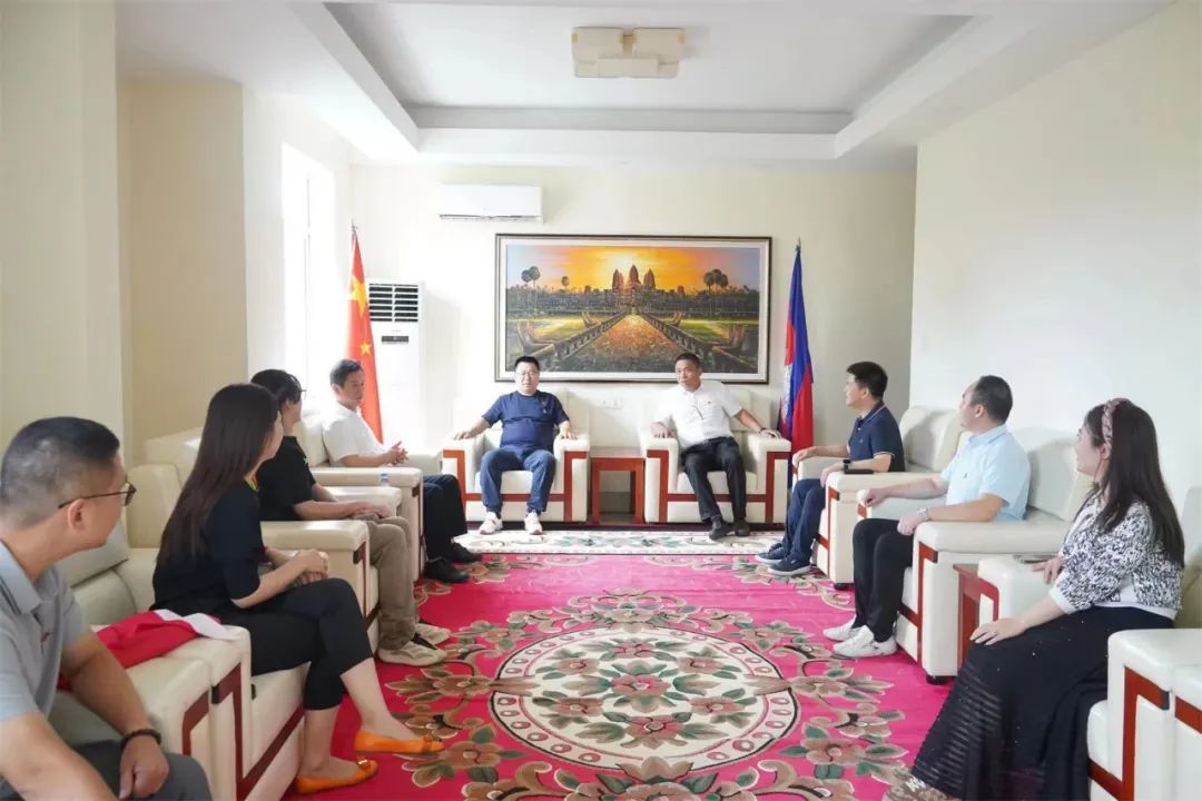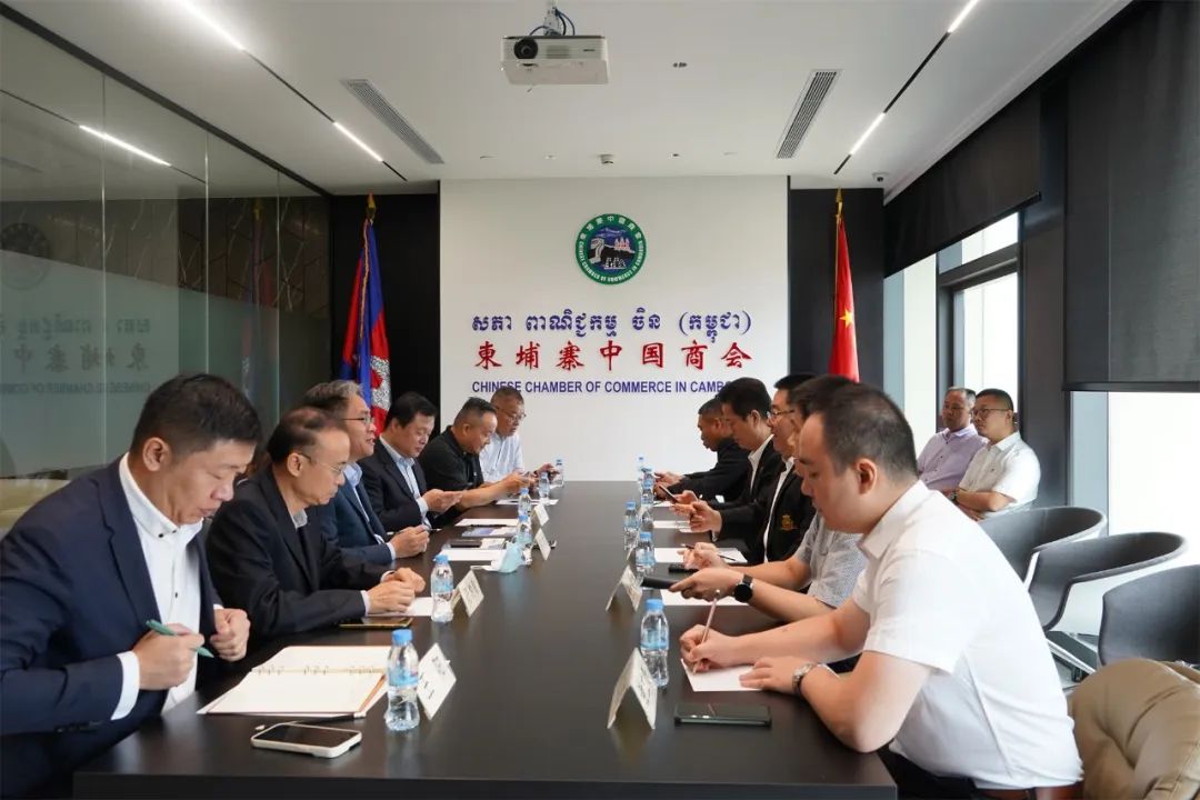 考察团一行首先拜访了柬埔寨中国商会,柬埔寨中国商会会长林士强,常务副会长兼秘书长赵金辉等6人热情接见。