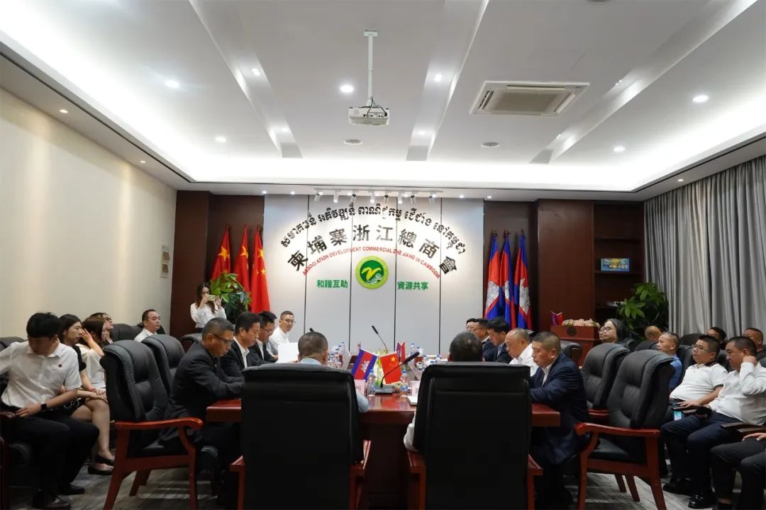 随后,考察团一行来到了柬埔寨浙江总商会并座谈交流。柬埔寨浙江总商会会长施永平,常务副会长沈琦明、黄锋勇、梅忠敏,副会长兼副秘书长祝义红等热情接待。
