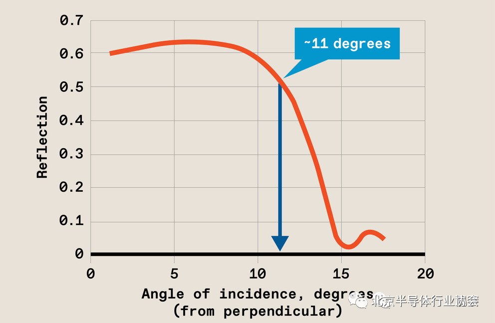 但这个角度是有限制的。由于 EUV 光刻所需的反射掩模实际上是由多层材料制成的,因此无法确保在特定反射角度以上获得适当的反射。EUV掩模的最大反射角为11度。还有其他挑战,但反射角度是最大的。