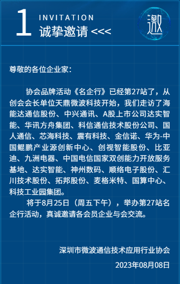 我会将于2023年8月25日(周五)下午举行《名企行》第27站参访行云集团,地址是深圳市南山区南山大道3186号莲花广场A座,请参会企业家扫描小程序码进行报名。