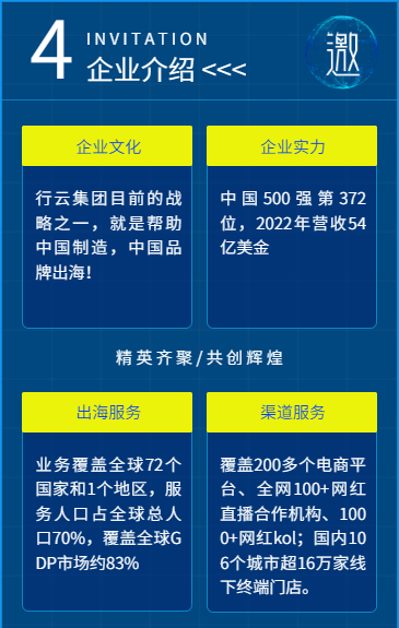 行云集团成立于2015年,是中国领先的全球商品B2B服务平台,致力于提供全球渠道运营、分销及跨境贸易服务,打造了集出海服务、品牌服务、渠道服务、跨境物流服务等于一体的全球商品综合服务体系,助力全球商品流转。集团现有全球员工3000余人,构建深圳、杭州、上海、中国香港、新加坡多总部运营格局,在德国、日本、澳大利亚等全球72个国家和1个地区设立控股子公司。