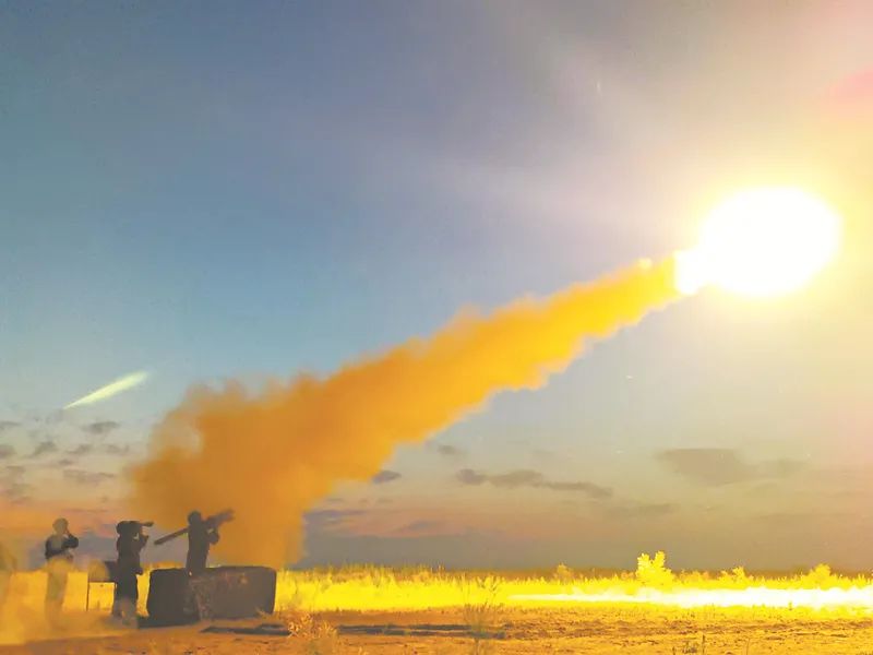 近日,第80集团军某旅组织跨昼夜实弹射击演练,图为官兵在对空中目标尾追射击。周昕垚摄
