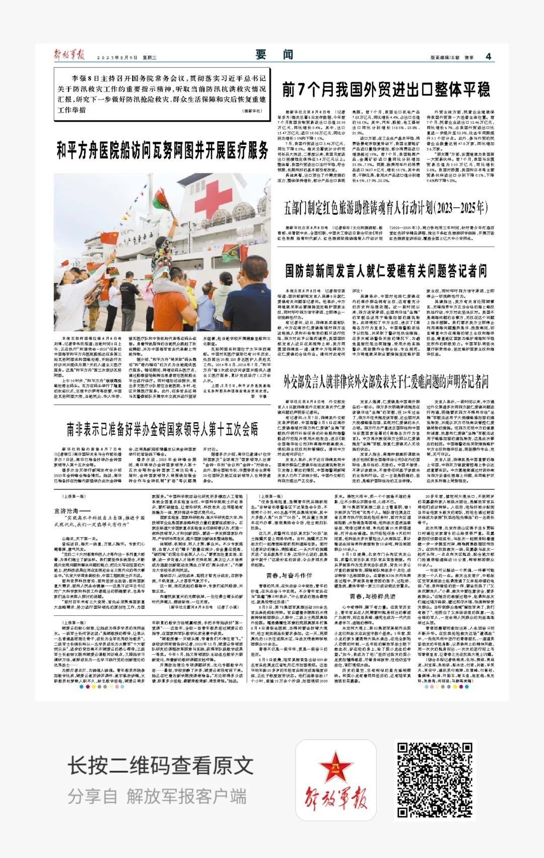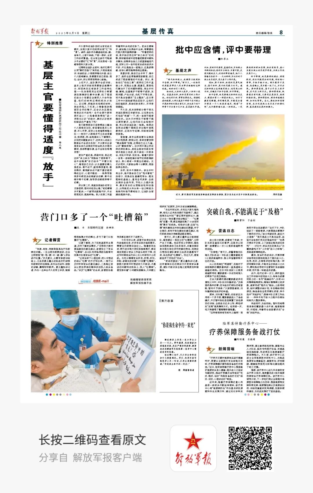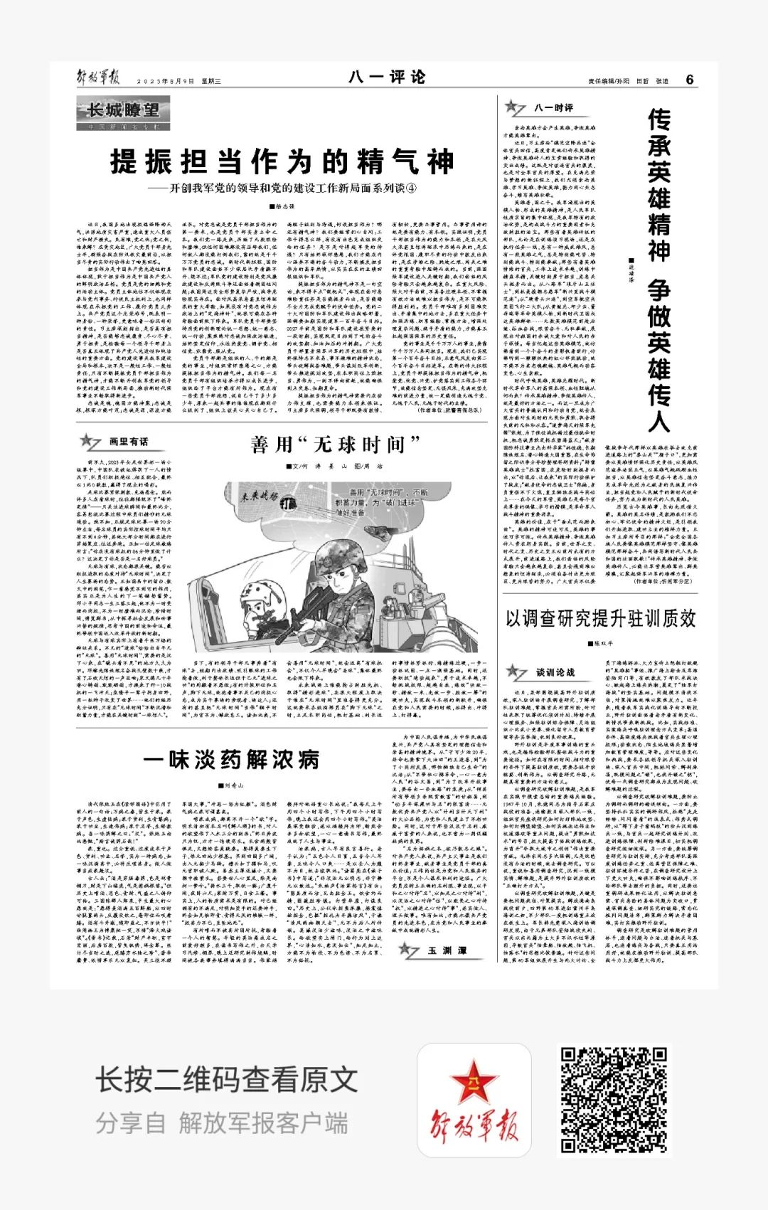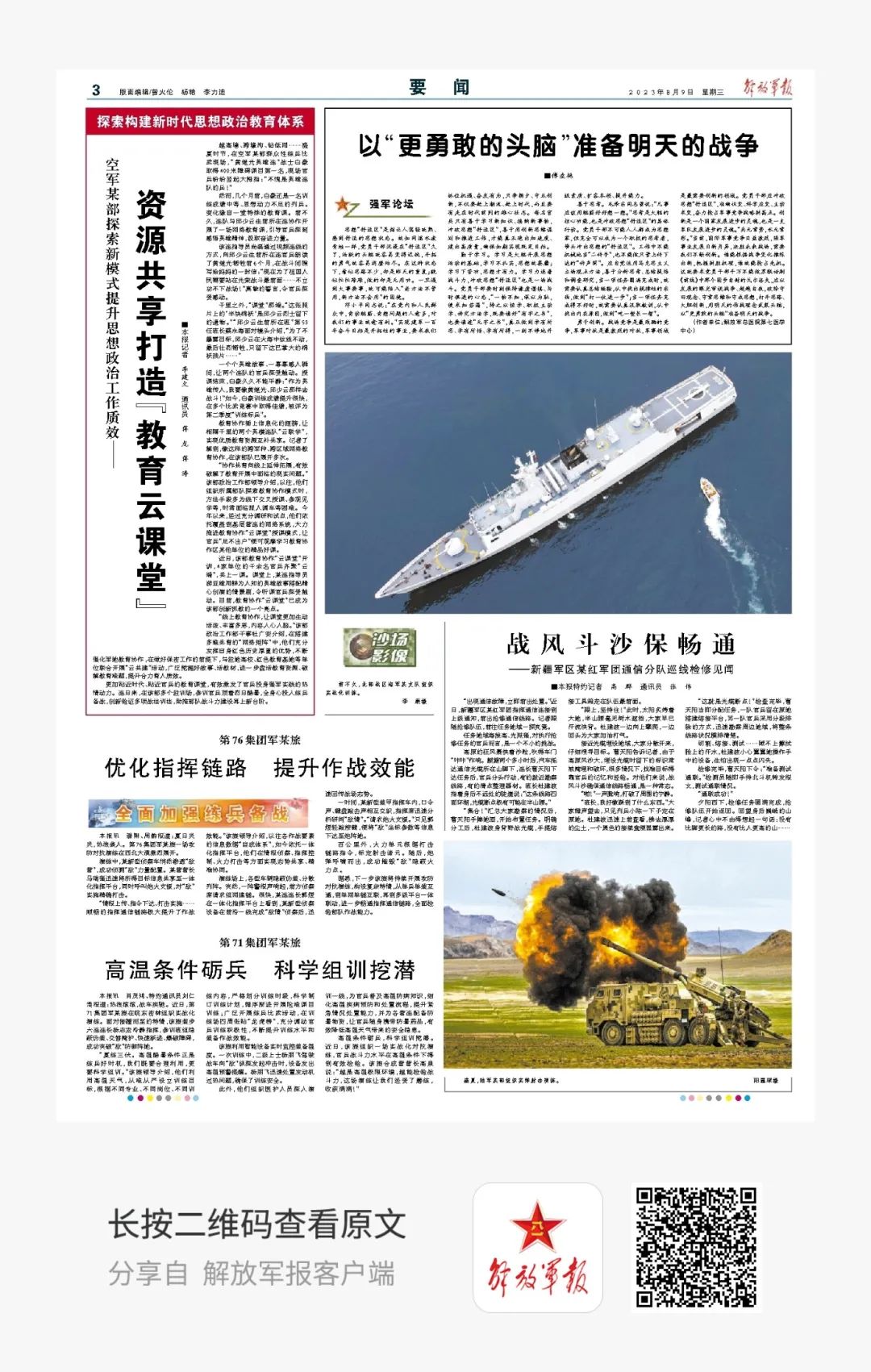 今天是8月9日,星期三,一起来看今天军报有哪些内容。