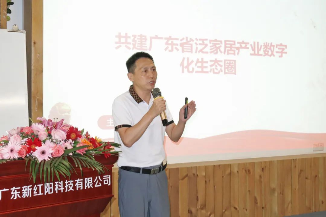 广东新红阳科技有限公司董事总经理朱玉山在致辞中表示,数字化转型是广东家具业实现高质量发展的必然要求。新红阳公司一直致力于家具行业的数字化转型,在致力于打造大湾区数字化智能家具产业园等方面,进行了大量探索和积极实践,也取得了一些成效。期待在本次交流会后,能与省家具协会及与会者保持密切合作,共同推动广东家具企业的数字化转型。