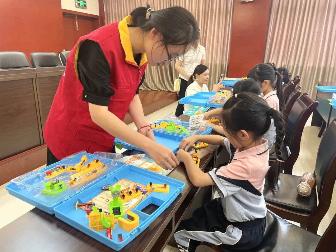 学习了基础的理论知识,接下来就要考验同学们的动手能力了。供电公司给每位小朋友配发模拟电路设备箱,结合授课老师讲的电路知识,理论结合实际,将电器元件连成回路点亮小灯泡。