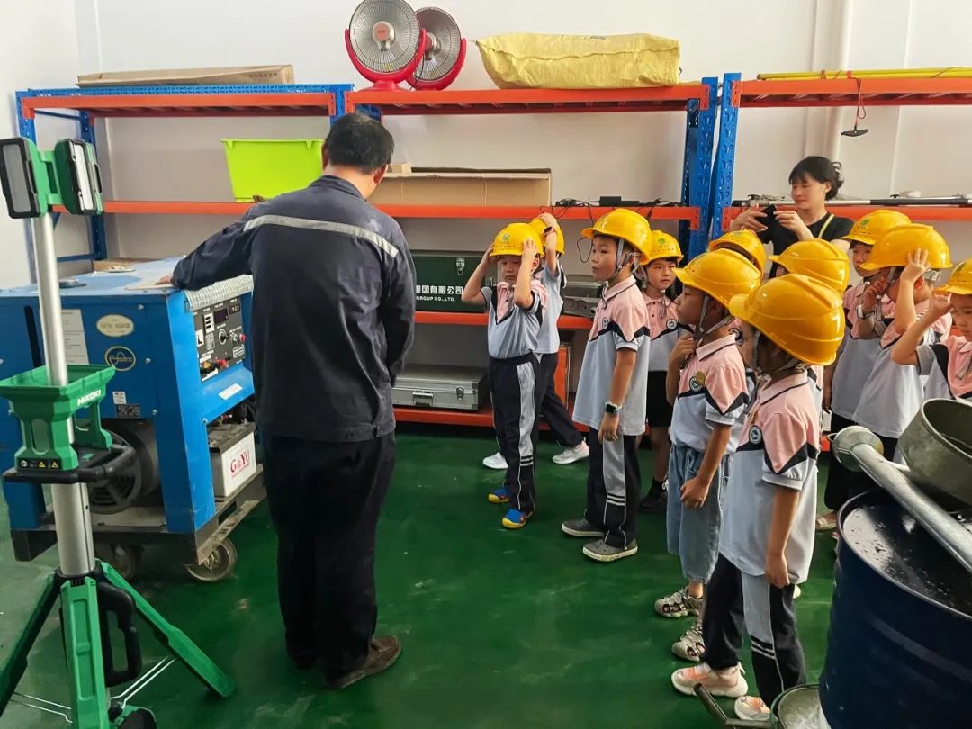 我们进入车间,戴上小黄帽,俨然就是一个小小工程师了。老师给“小小电工”介绍了各种电气设备,讲解了应急发电机的用途,主要用于某些对供电可靠性要求较高的单位,为了防止意外情况,如出现电路故障或发生临时停电之类,配置发电机组作应急发电使用。只不过它不被作为主电源使用,而仅仅在紧急的情况下作为一种救济手段使用。