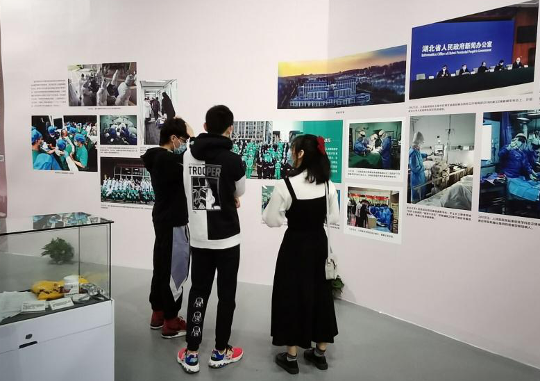 然后,主持人带领大家参观“武汉大学抗击新冠肺炎疫情特展”。该展通过展出抗疫过程中的物品资料和英雄事迹,让同学们看到武汉大学在抗击疫情中的付出与贡献。同学们在参观过程中了解了抗疫的艰辛和不易,对抗疫英雄的敬意油然而生。
