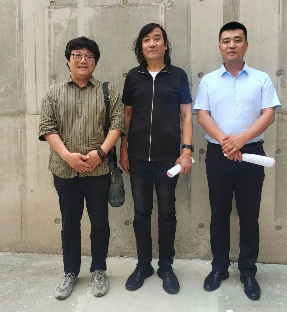 图为泰安校友会齐华君、赵珂与学校校庆办主任、教育基金会理事长苗登宇合影