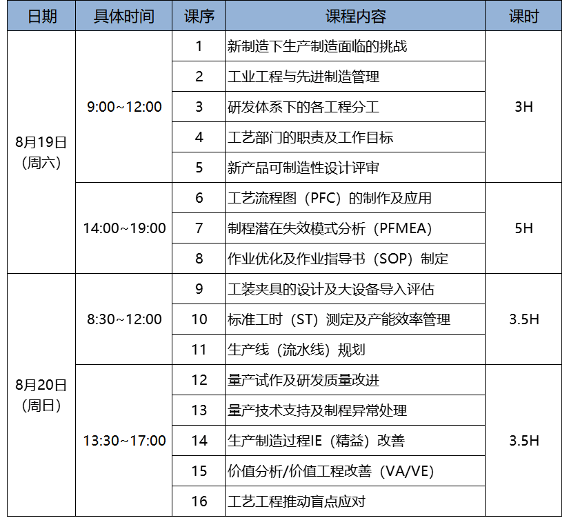 8月20日(D2):上午8:30 ~ 12:00;下午13:30 ~ 17:00