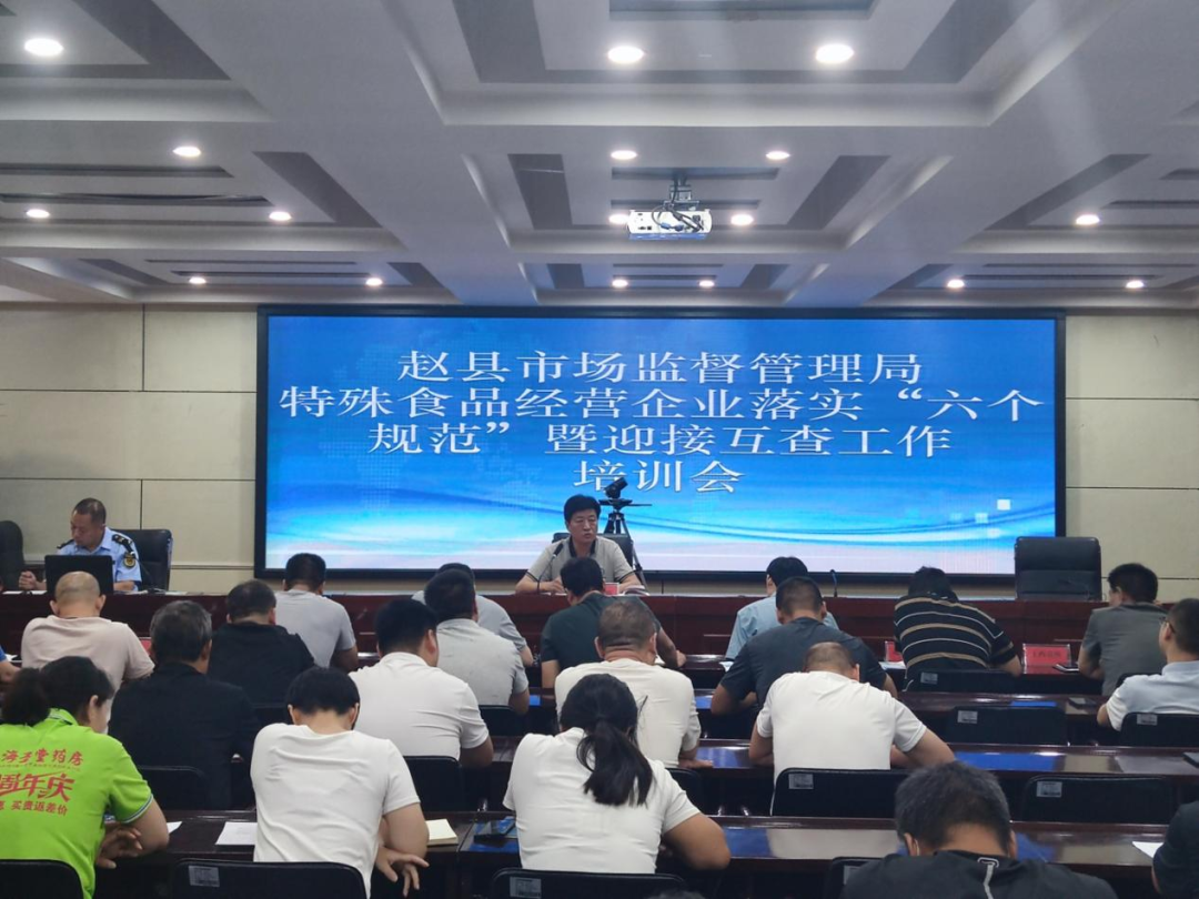 为落实特殊食品经营企业“两个责任”,8月7日,赵县市场监督管理局召开特殊食品经营企业落实“六个规范”工作培训会。县市场监督管理局主管负责同志、各市场监管所食品监管人员,84家特殊食品经营单位负责人参加会议。