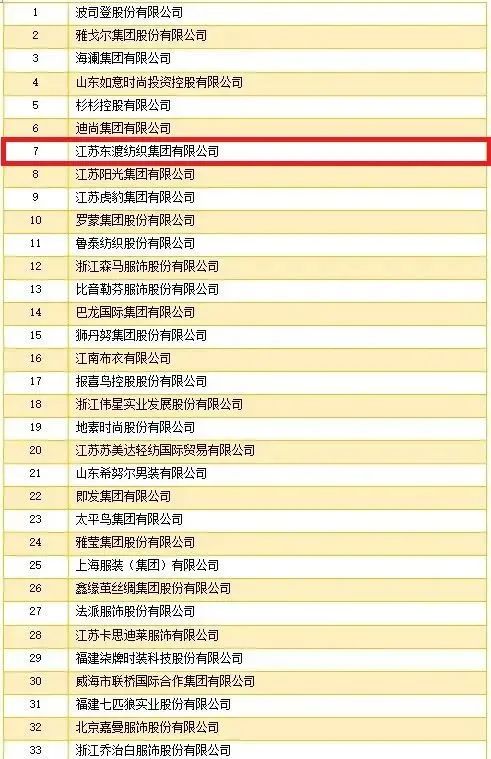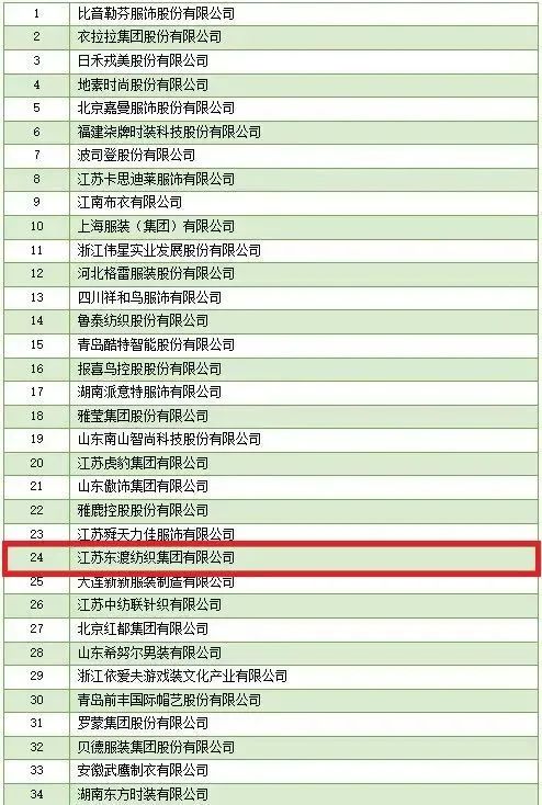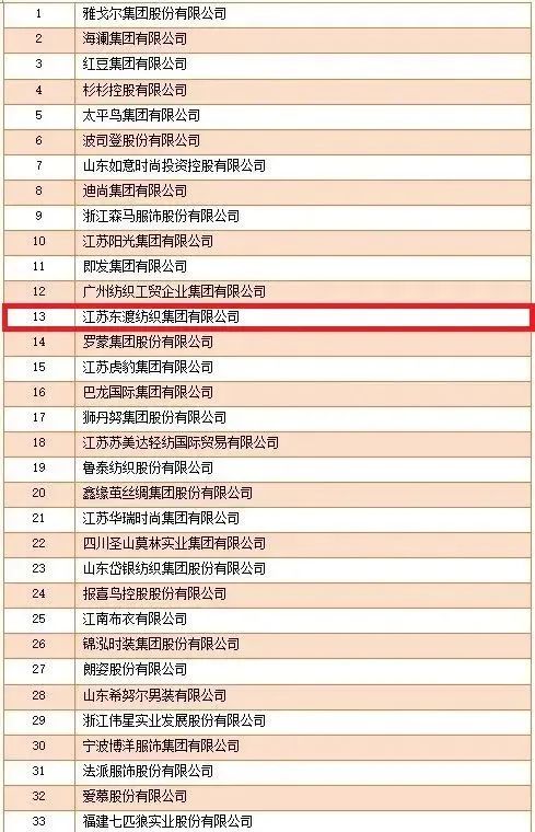“2022年服装行业百强企业”名单,