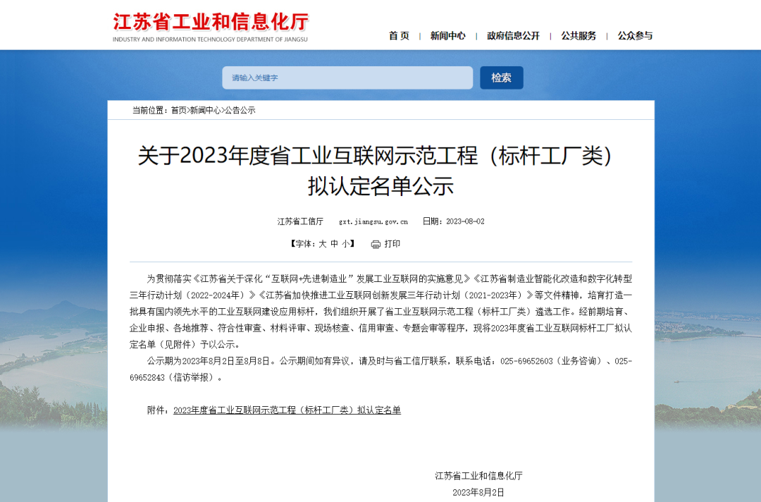 江苏省工信厅为推动我省“互联网+先进制造业”融合发展,推进制造业迈向中高端,提升两化融合和智能制造发展水平,特组织实施工业互联网示范工程企业评定。