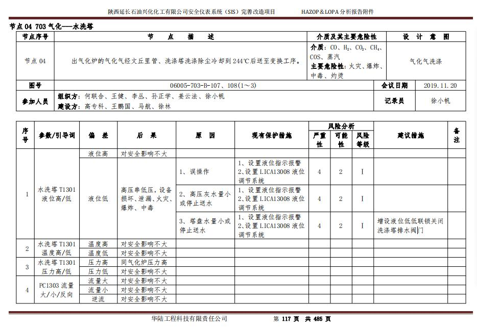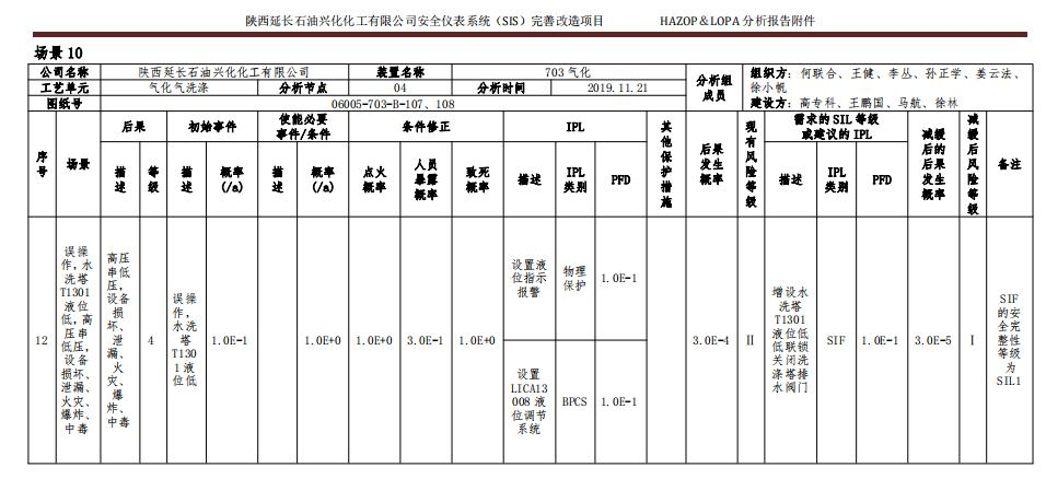 LOPA 与HAZOP一般同步进行,参加的人员及阶段也相同。保护层分析法(LOPA) 是建立在HAZOP分析基础上,对所有辨识出的高风险或重大风险,列出其初始事件(IE)、后果、独立保护层(IPL)、原始风险、现有风险、PPD、残余风险等。