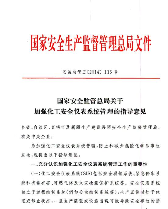 为了进一步规范和统一化工企业安全仪表系统等安全设施标准,不断提升化工企业本质安全水平,对危险化学品企业要进行“机械化换人、自动化减人”安全技术改造工作。