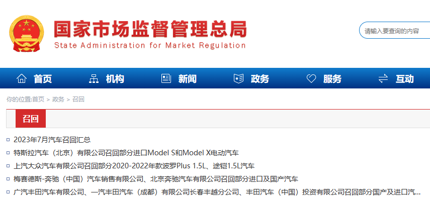 特斯拉汽车(北京)有限公司根据《缺陷汽车产品召回管理条例》和《缺陷汽车产品召回管理条例实施办法》的要求,向国家市场监督管理总局备案了召回计划,决定自即日起召回以下车辆: