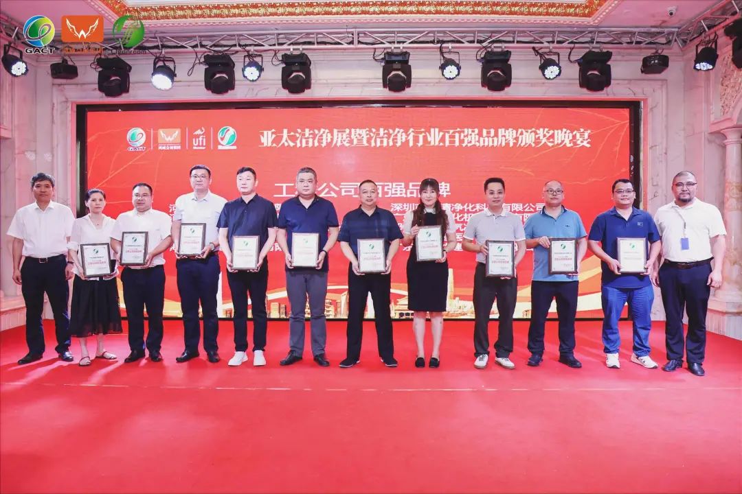 8月8日,由广东鸿威国际会展集团主办,各协会、企业的鼎力支持下,亚太洁净展暨洁净行业百强品牌颁奖晚宴在广州·粤大金融城国际酒店取得圆满成功。四方宾客汇聚于此,举杯共庆百强榜企业评选活动的顺利进行,以及为获奖单位的喝彩。