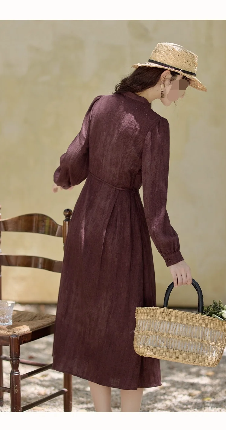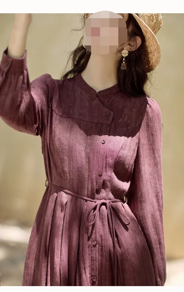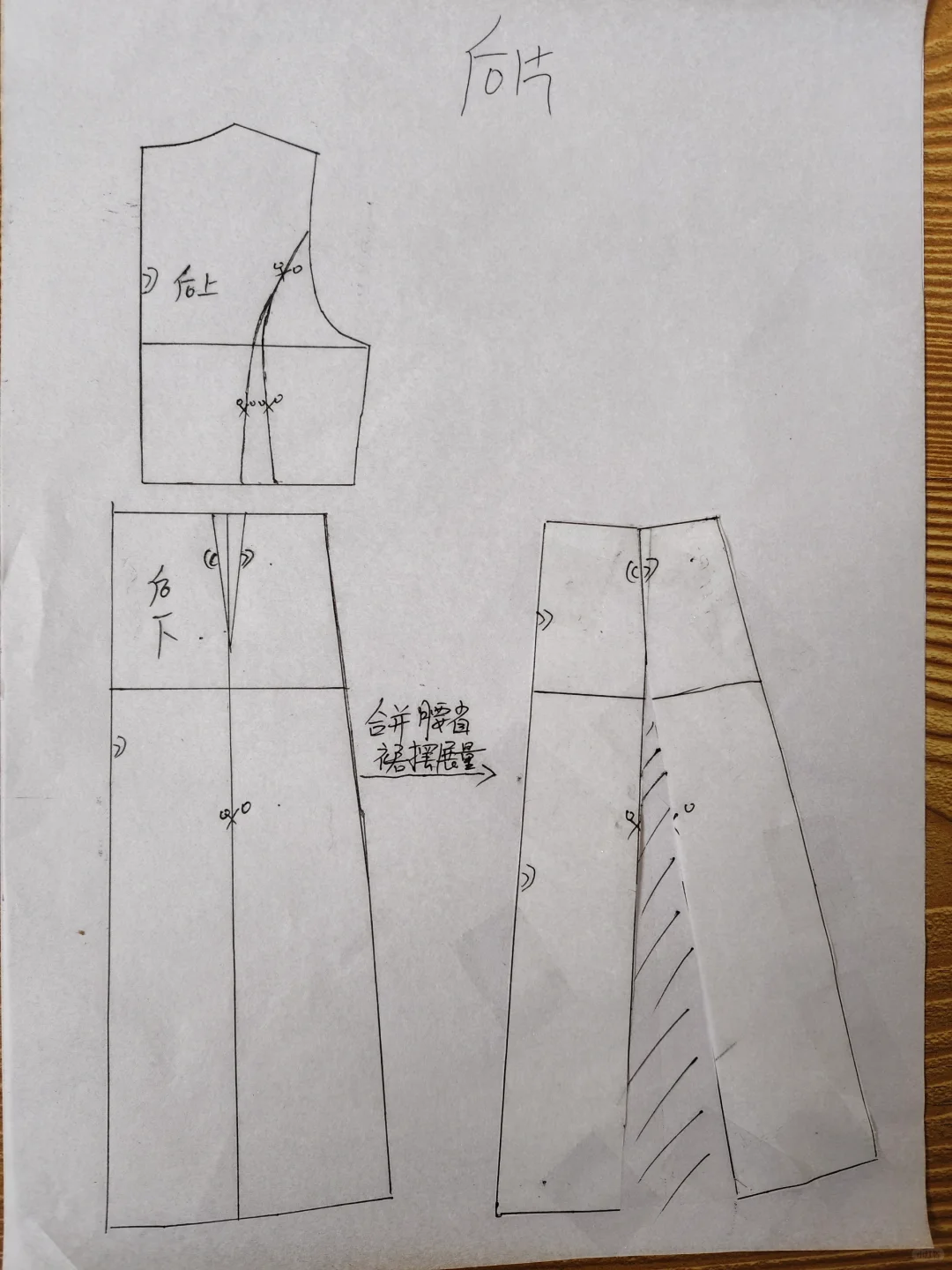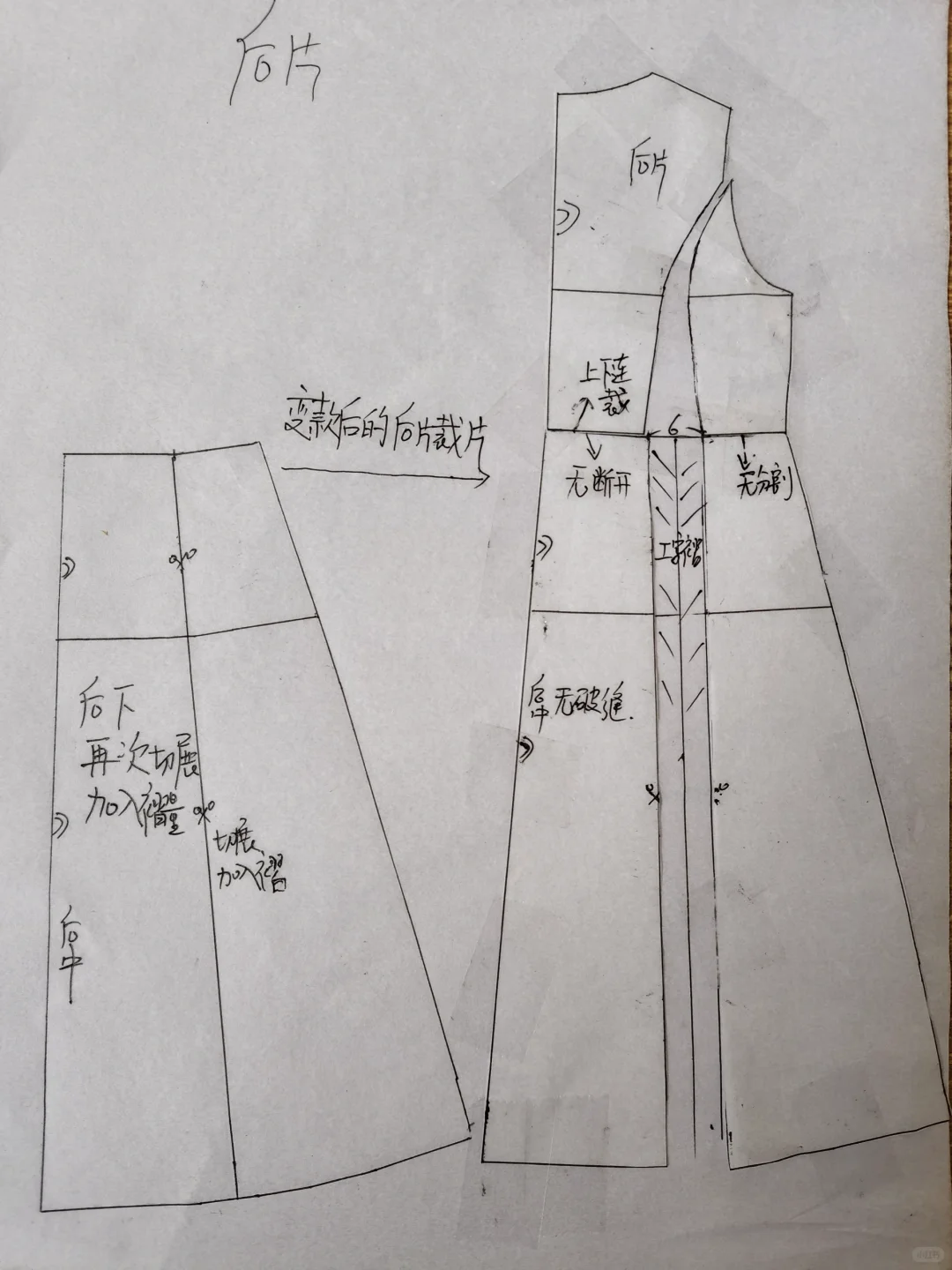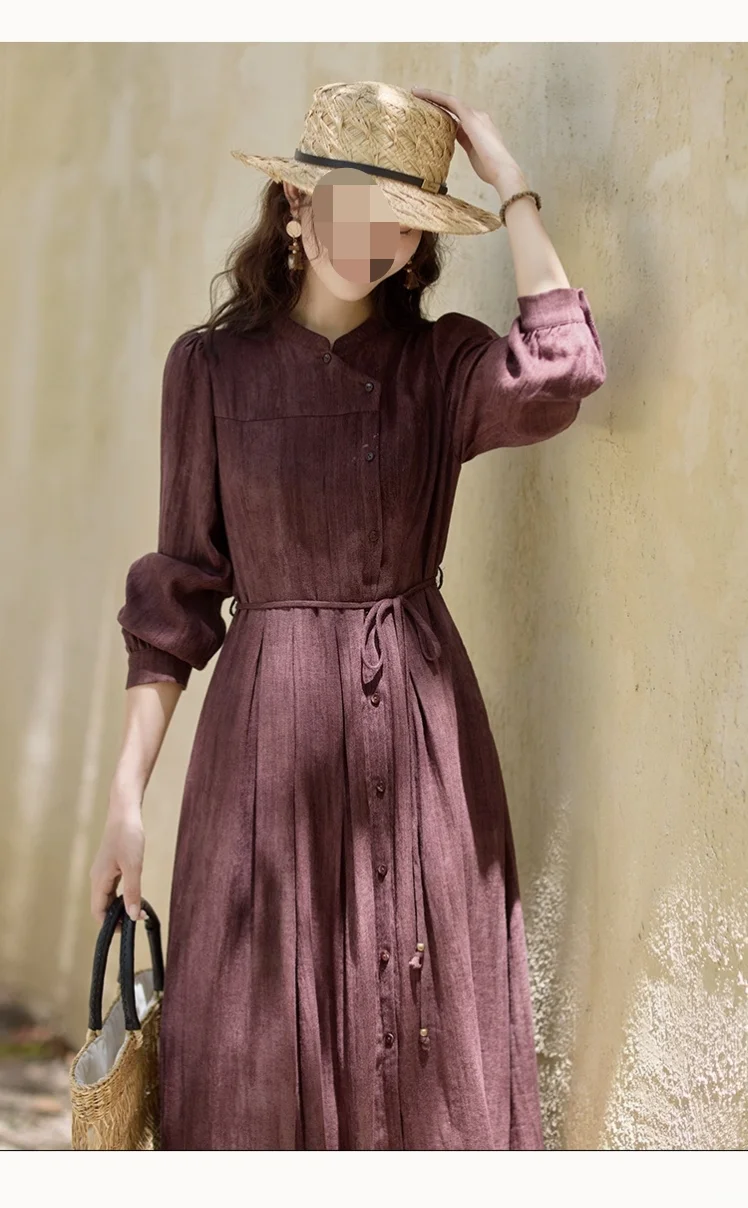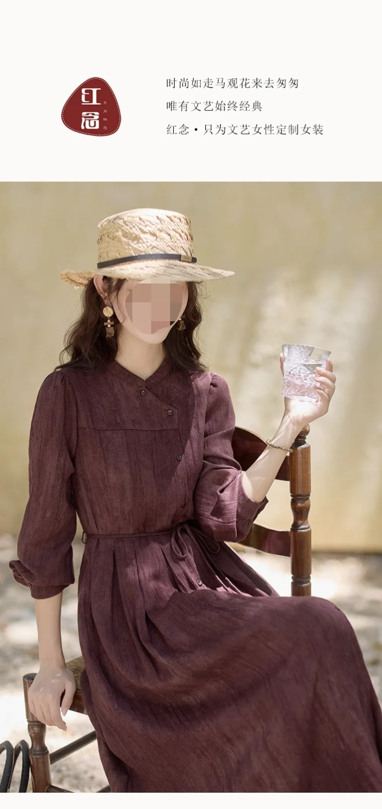 #我的手工日常 版型特征:中式元素西式结构,长款连衣裙,胸围偏合体,腰部偏宽松,系腰绳调节腰线,中式小立领,前后片均非断腰节,后片刀背缝,后腰下裙切展加入工字褶,后中不破逢,前片左右不对称,右压左,小偏襟,10粒纽扣开合,左前刀背缝,腰部插入工字褶,右前上下分割,右下三条纵向分割线省道合并,腰部插入三个工字褶,变款后下摆围达2米多,袖子为灯笼袖,袖口抽碎褶。整体效果:西式结构凸显身材,中式元素复古沉稳,优雅端庄且赋予文艺气息,是春秋必备裙装,旅行,日常通勤皆宜。适合面料:亚麻混纺,也可春秋款裙装梭织面料。#服装设计 #裁剪图 #服装打版 #服装裁剪 #中式穿搭 #服装与服饰 #复古连衣裙 #连衣裙 #做衣服