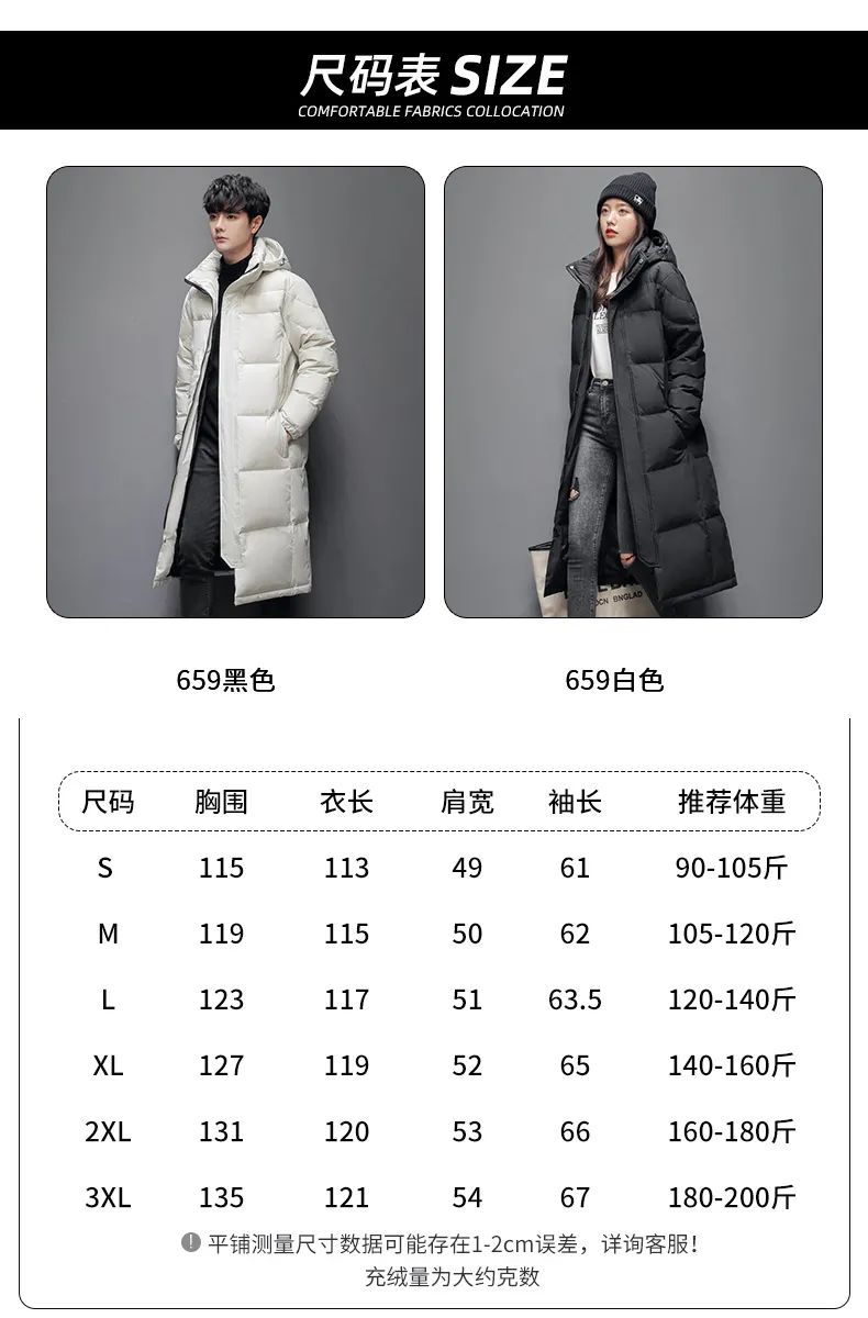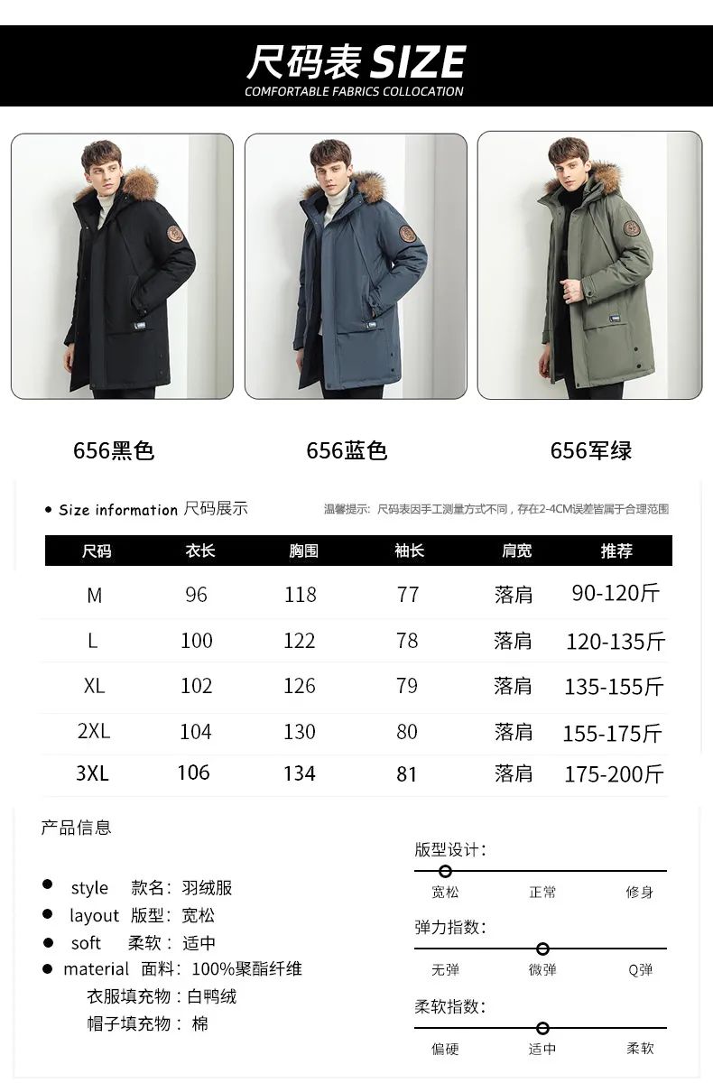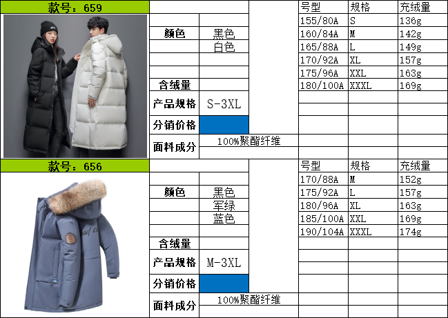 656毛绒帽檐款尺码表如下,M-3XL六个尺码,90-200斤都可以自由穿着哦~