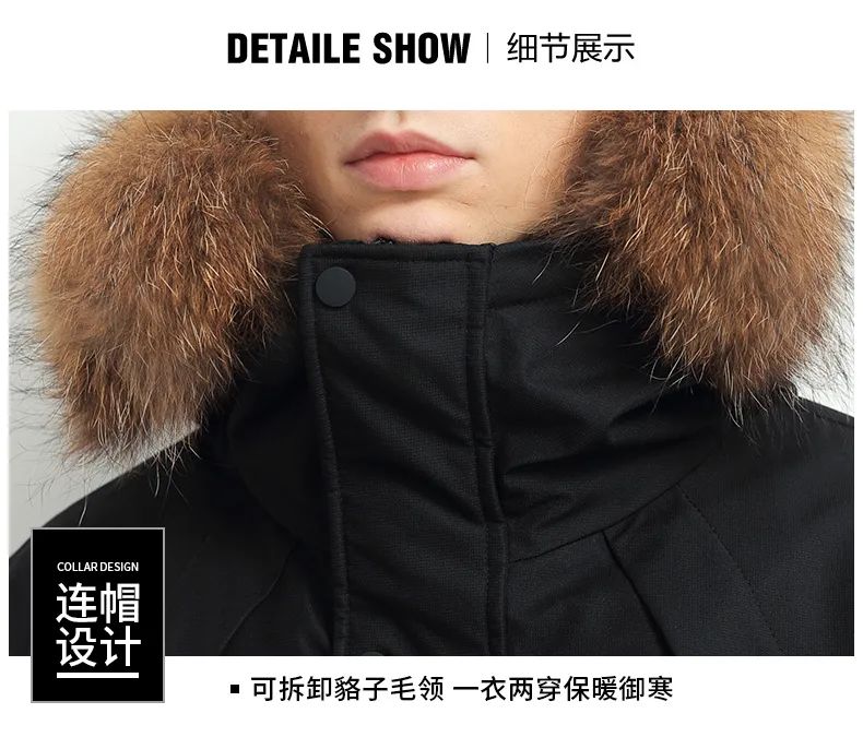 带貂子毛绒帽檐的连帽设计,它能保护脸部、头部不被冻着,挡风保暖,还显脸小。