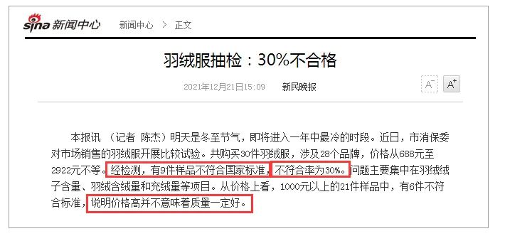 因隐蔽性太强,羽绒服在每年国家服装抽检里合格率就非常低。