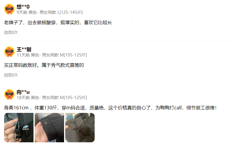 只是买羽绒服实在及难了,除了款式、鸭绒品质外,好打理,不结块,保暖、显瘦、无异味都非常关键,有时看着挺好,买回来穿两天才知道踩坑了。