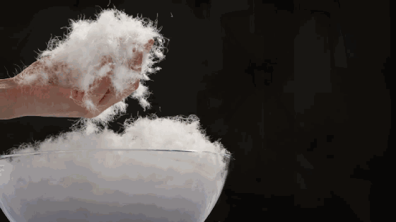 这些羽绒呈特别的芦花状,上面密布千万个细小气孔,能随气温变化而收缩膨胀,产生调温功能。