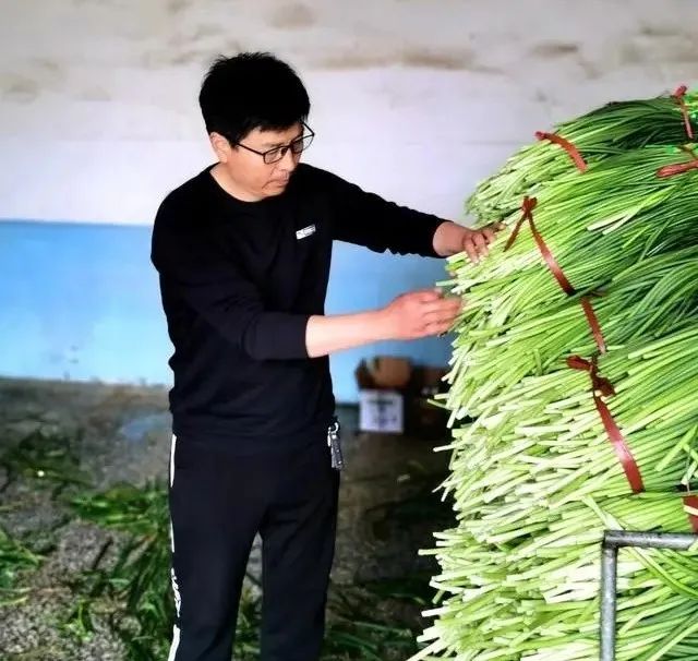 他不仅通过自身的努力给种植户做榜样,而且不断尝试引导传统农业向精品农业转型。打破传统习惯,蒜薹由系梢变捆把,由系活扣变系死扣,有效保证了蒜薹的外观和运输便利,蒜薹包装习惯方式的变革、精细化形象的展现,也助推着仁兆蒜薹的价格较大提升。