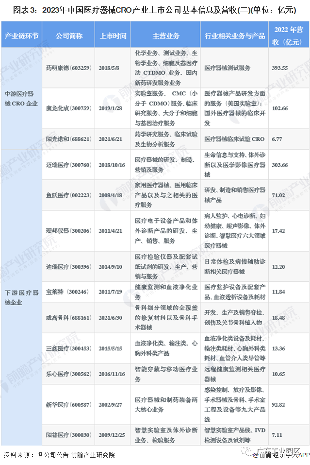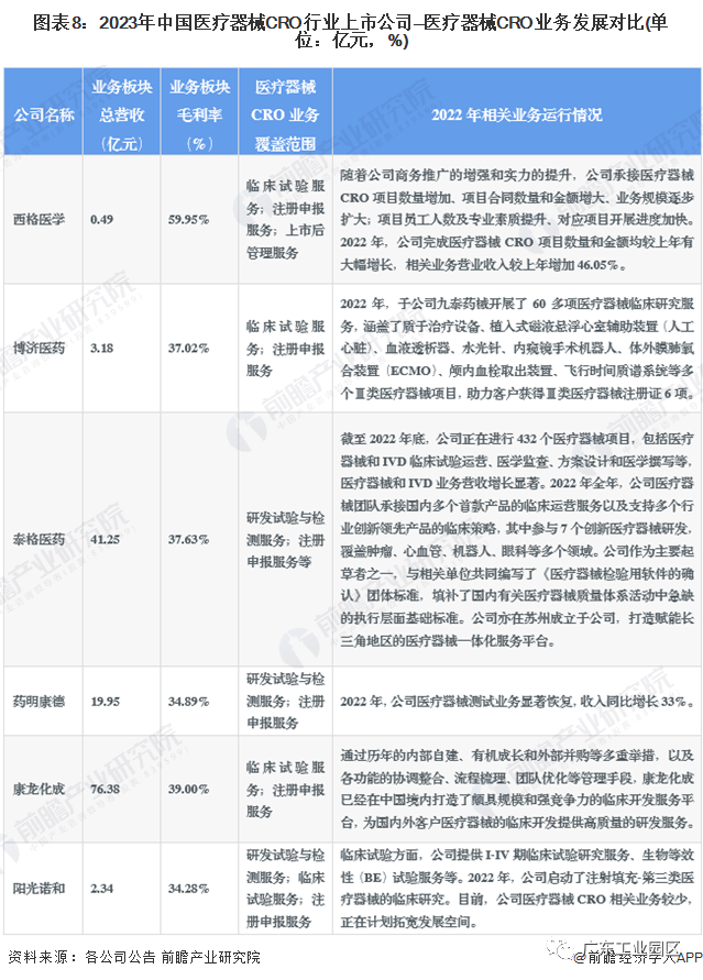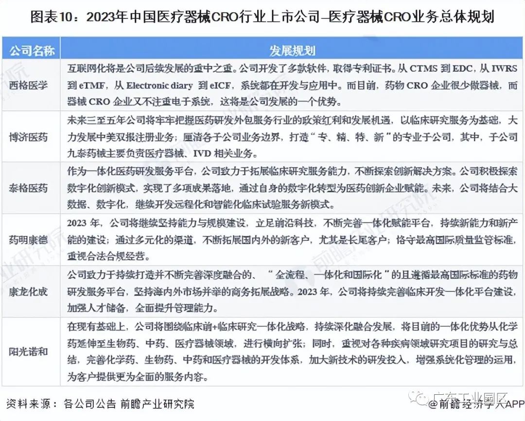 医疗器械CRO行业上市公司业务规划对比