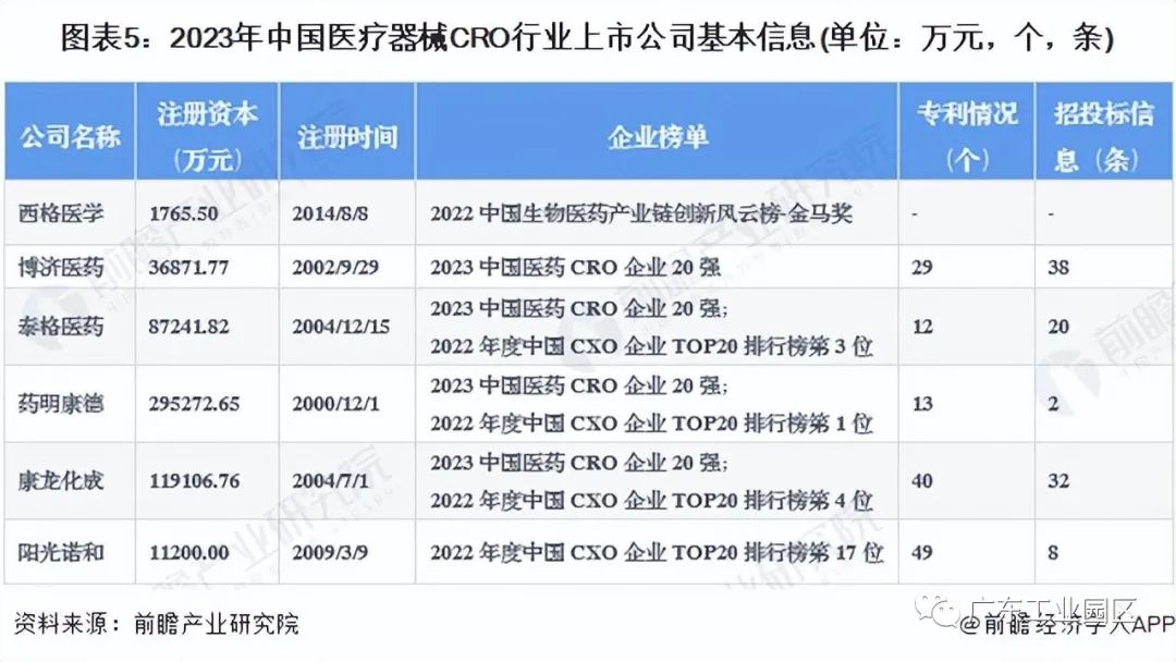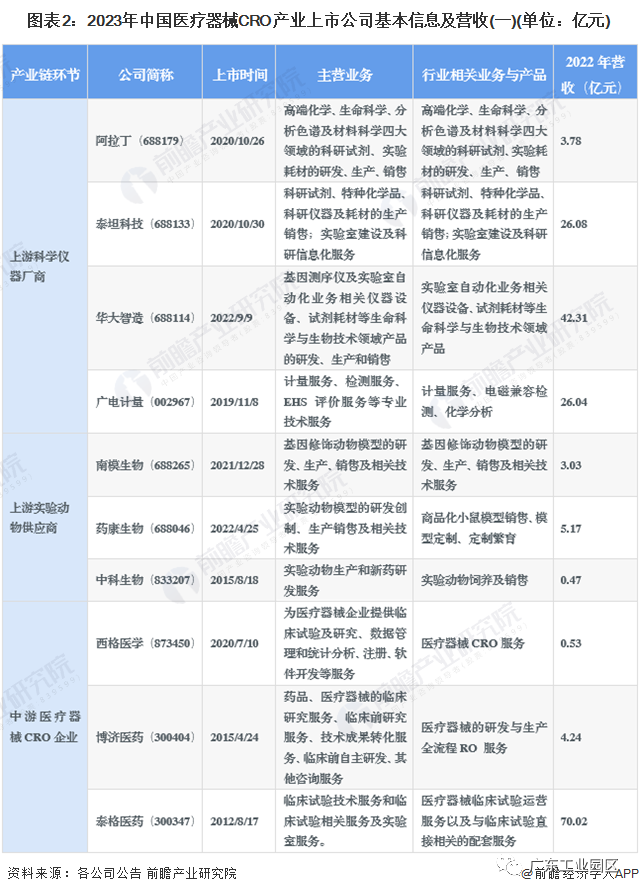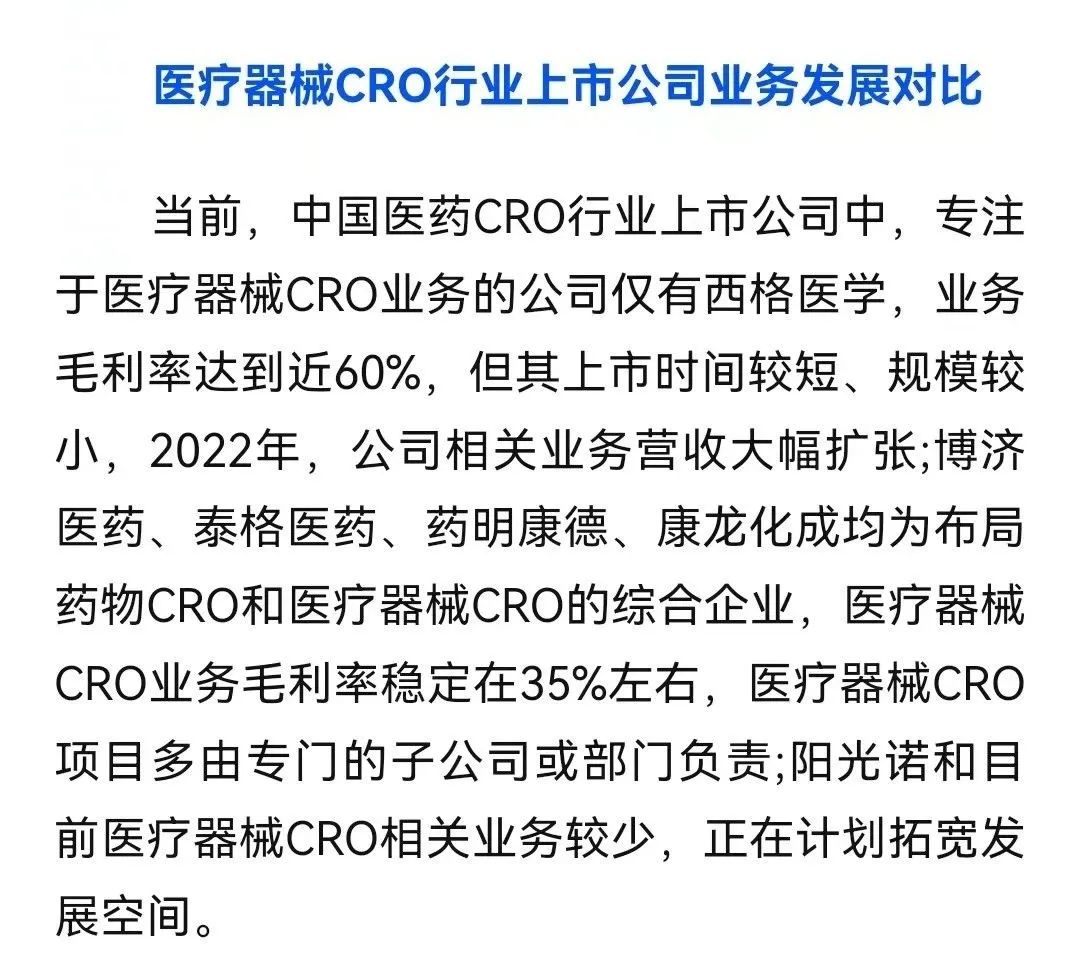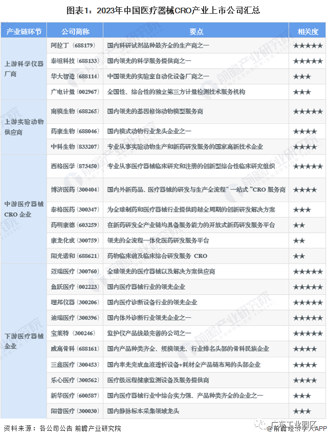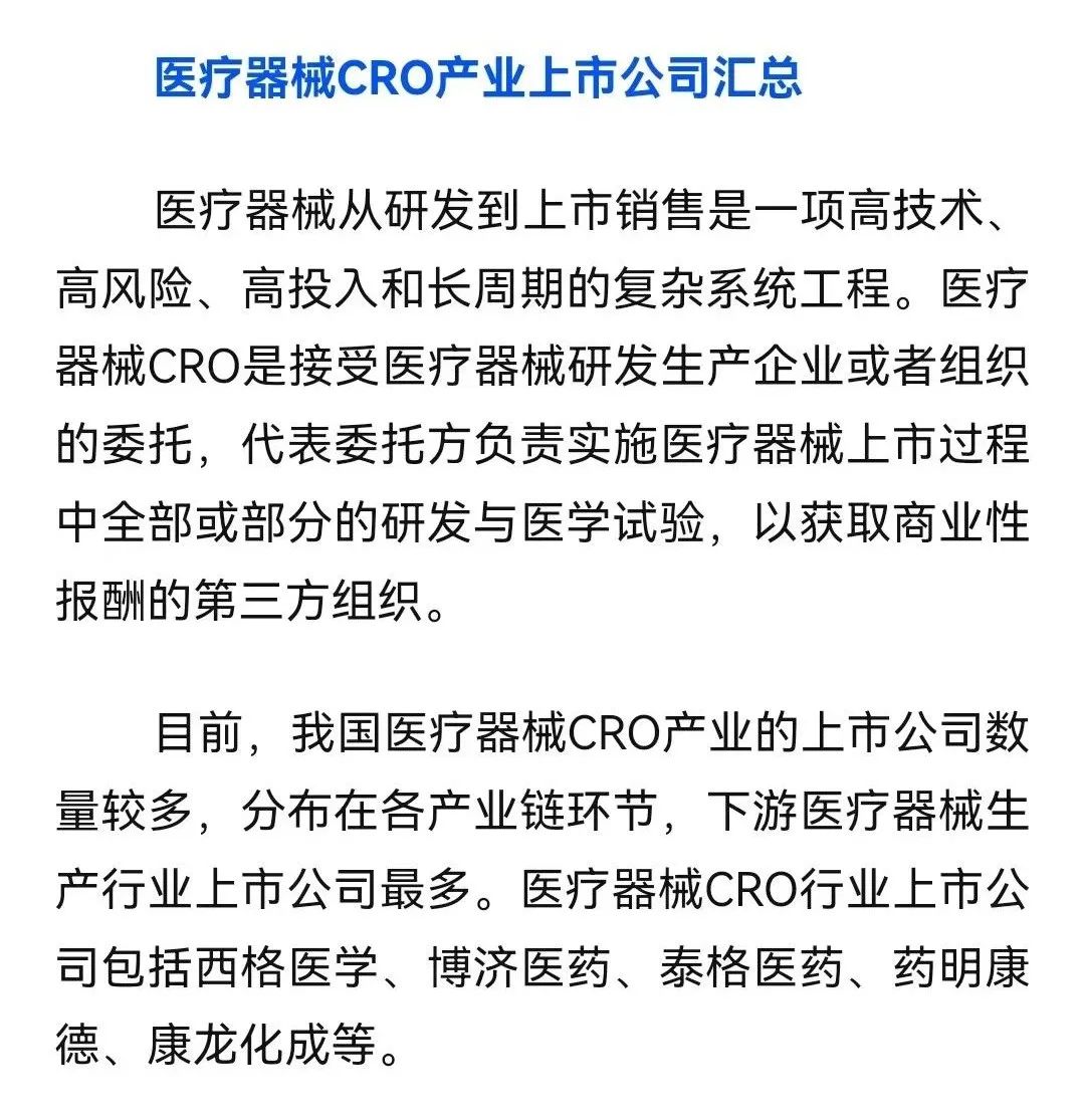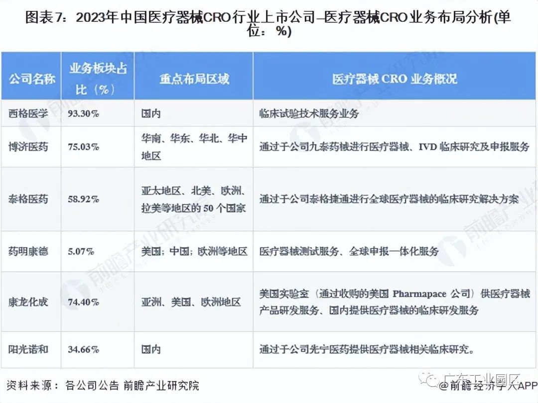 医疗器械CRO行业上市公司业务布局对比